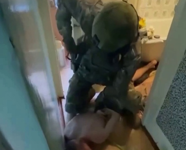 Издание опубликовало видео, на котором молодой человек в гражданской одежде открывает дверь квартиры сотрудникам СОБР. Двое из них врываются в жилье, идут в ванную и валят на пол молодого человек, который был там. Тот спрашивает: «Что я сделал?»