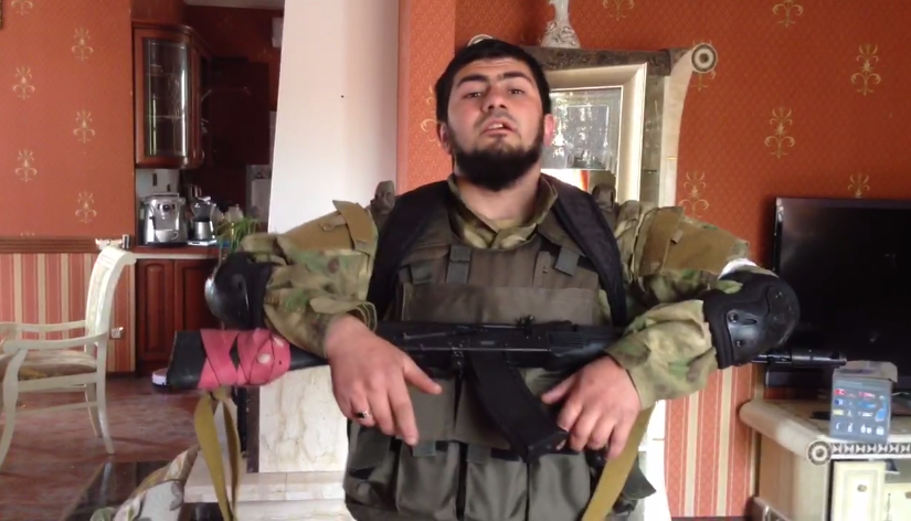 Доброволец Ислам в доме секретаря Северодонецкого горсовета Игоря Буткова в Щедрищеве. Скриншот видео в телеграм-канале Александра Воложанина
