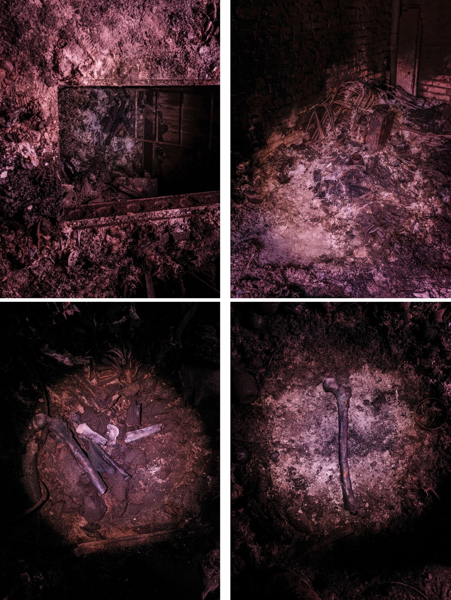 Вадим показывает мне свой район — железнодорожную станцию, начальную школу, кирпичные здания 1960-х годов, построенные для рабочих расположенного внизу стеклозавода. Здесь тихие улицы, небольшие магазинчики и спокойные соседи. Наконец по грунтовой дороге, вьющейся между железнодорожными путями и заросшей травой спортивной площадкой, в десяти минутах от его дома, мы приходим к маленьким гаражам из листового металла, которые так характерны для бывшего СССР. Вадим останавливается у сгоревшего до основания гаража с рухнувшей крышей и дырявого как решето: «Тут пряталось пять человек. Когда русские пришли, они отказались открыть. Русские бросили гранату, гараж долго горел. Среди них был мой отец». Он показывает мне на своем смартфоне фотографии, благодаря которым его опознали: часть бедра в том, что осталось от джинсов, четыре банковские карты, удостоверение личности авиационного завода «Антонов» и ботинок.