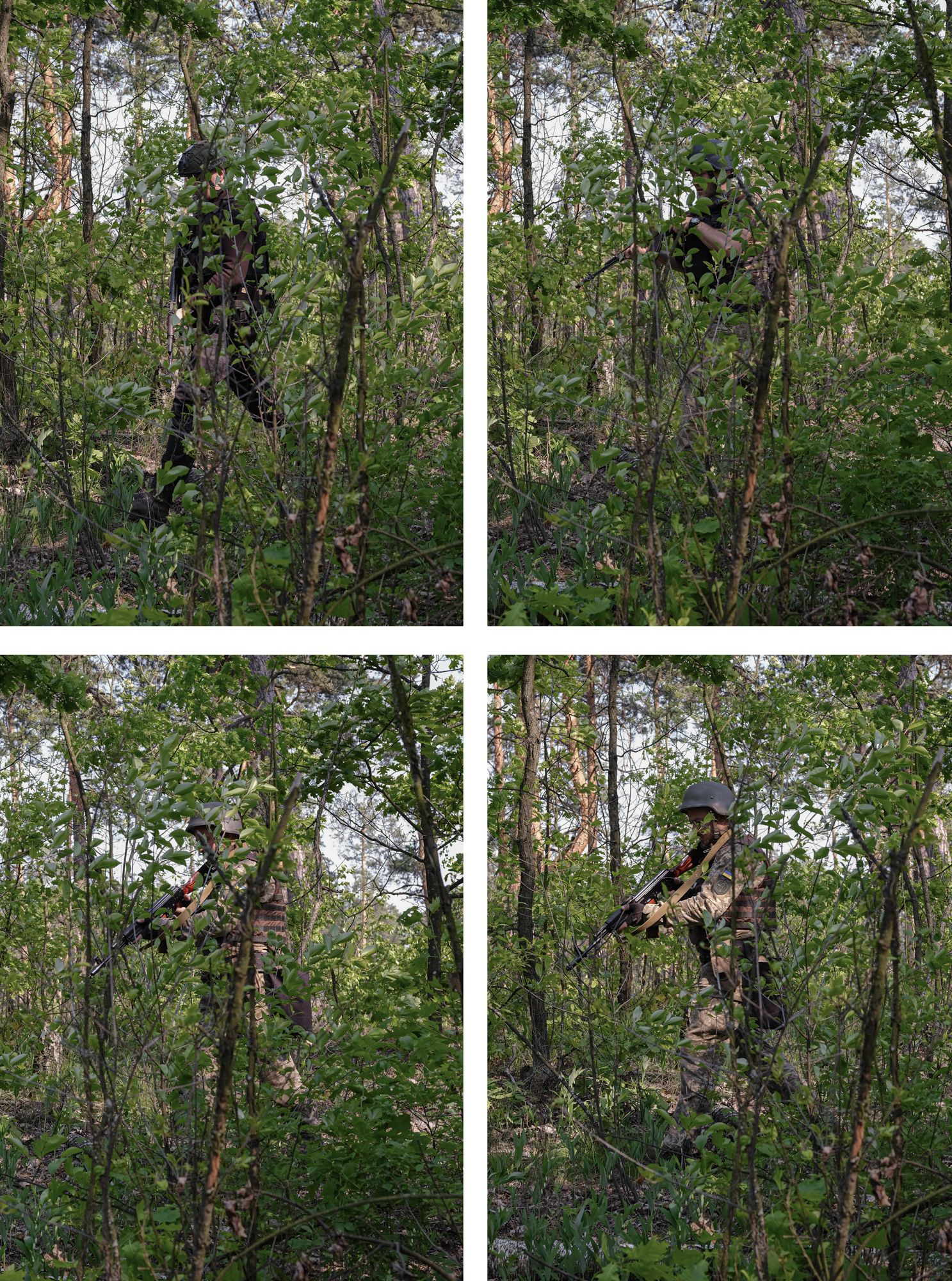 Пресс-атташе армии, Оксана, проводит для нас экскурсию по позициям территориальной обороны (ТО), расположенным в лесу вдоль длинной дороги. 30–40-летние парни — все добровольцы; многие, вдобавок к основному снаряжению, предоставляемому армией, сами приобрели в интернете прицелы, очки ночного видения или глушители. Только двое из них, Роман и Олександр, ветераны войны в Донбассе: они тренируют остальных — новичков. Олексий, к примеру, сварщик, который вступил в ТО 25 февраля; Саша, проживший семь лет в Дубае, где он работал иммиграционным консультантом, вернулся, чтобы записаться в армию добровольцем.