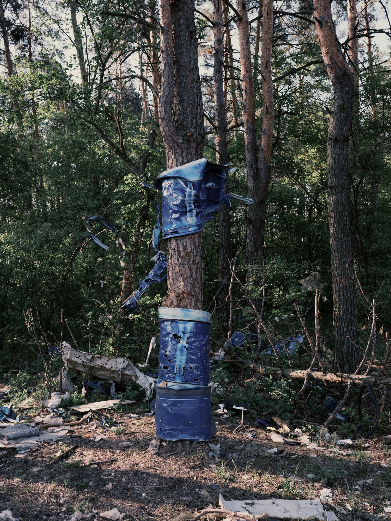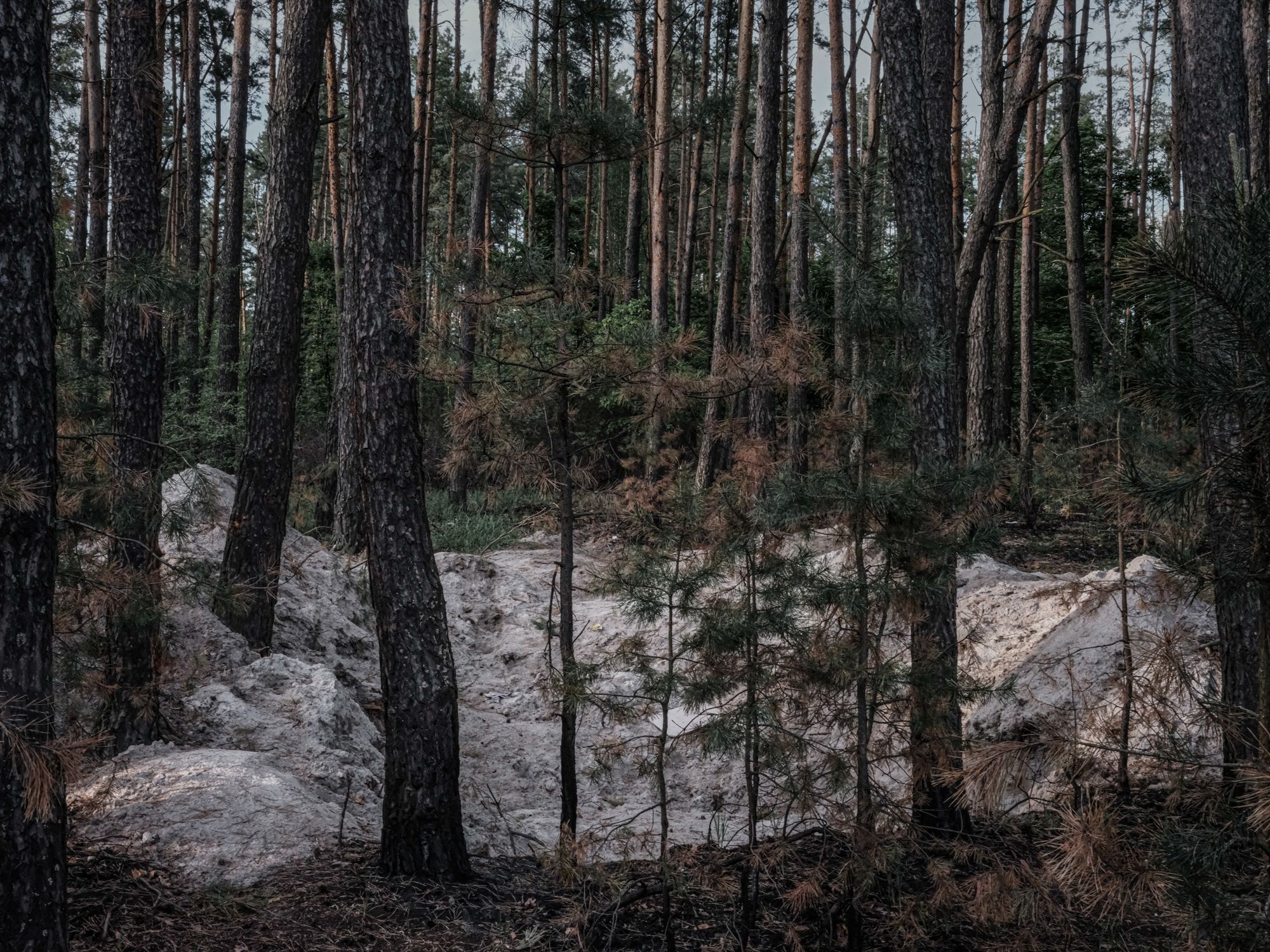 Буча стала символом. Но то, что произошло там, в той или иной мере имело место во всех деревнях, оккупированных россиянами в окрестностях Киева. Возьмем навскидку один из эпизодов, о которых я узнал. В конце мая полиция приглашает меня поприсутствовать на эксгумации в Макаровский район, примерно в 45 километрах на восток от Киева. Полицейские приводят нас в деревушку под названием Вышеград. В большом сосновом лесу мы обнаруживаем заброшенную российскую базу: бункеры, траншеи, следы саперных работ для защиты бронемашин или артиллерийских орудий.