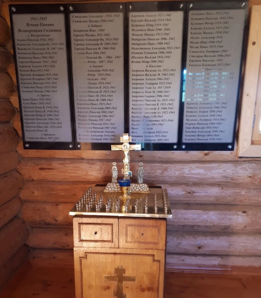 В Воскресенском Николай идет в часовню. Рядом руины церкви, прихожанами которой были его односельчане из Киселева. В часовне четыре гранитных плиты с именами погибших земляков. Идею подсказал приятель и сосед Николая — по любви осевший под Вологдой шотландец Брайан.
