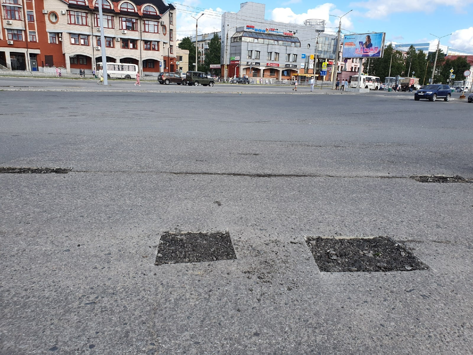 Интересно: справятся ли они с провалами у фонтана или как обычно баннером закроют, скосят ли траву на разделительной полосе или так песок там и останется, отремонтируют тротуар у пешеходного перехода у храма и срежут незаконную рекламу, у час пика с постоянной лужей?
