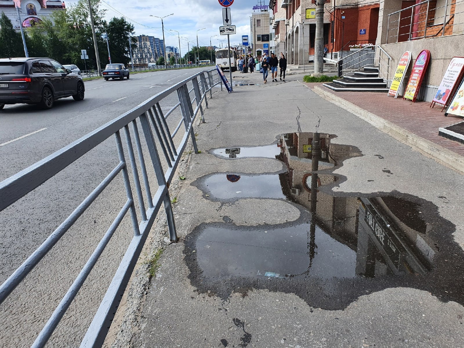 Понятно, что канализационная труба у храма так и будет сливаться, асфальт на причале не восстановят, недостающий забор на разделительной полосе не вернут.
