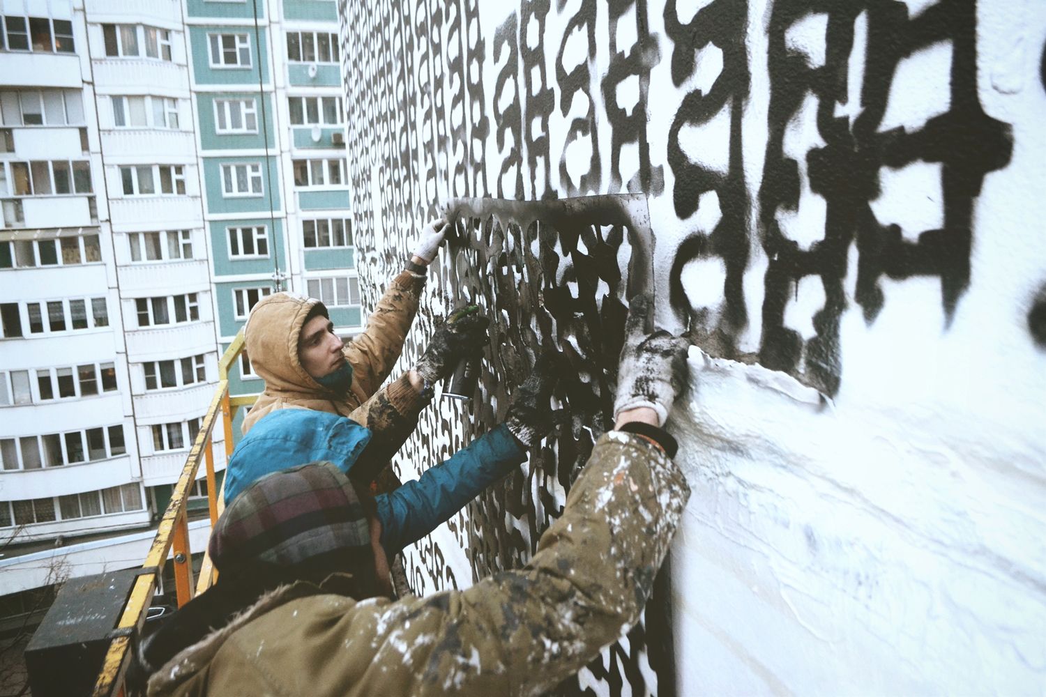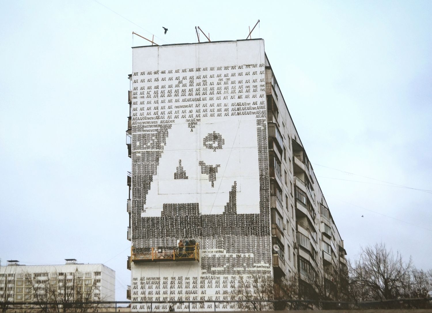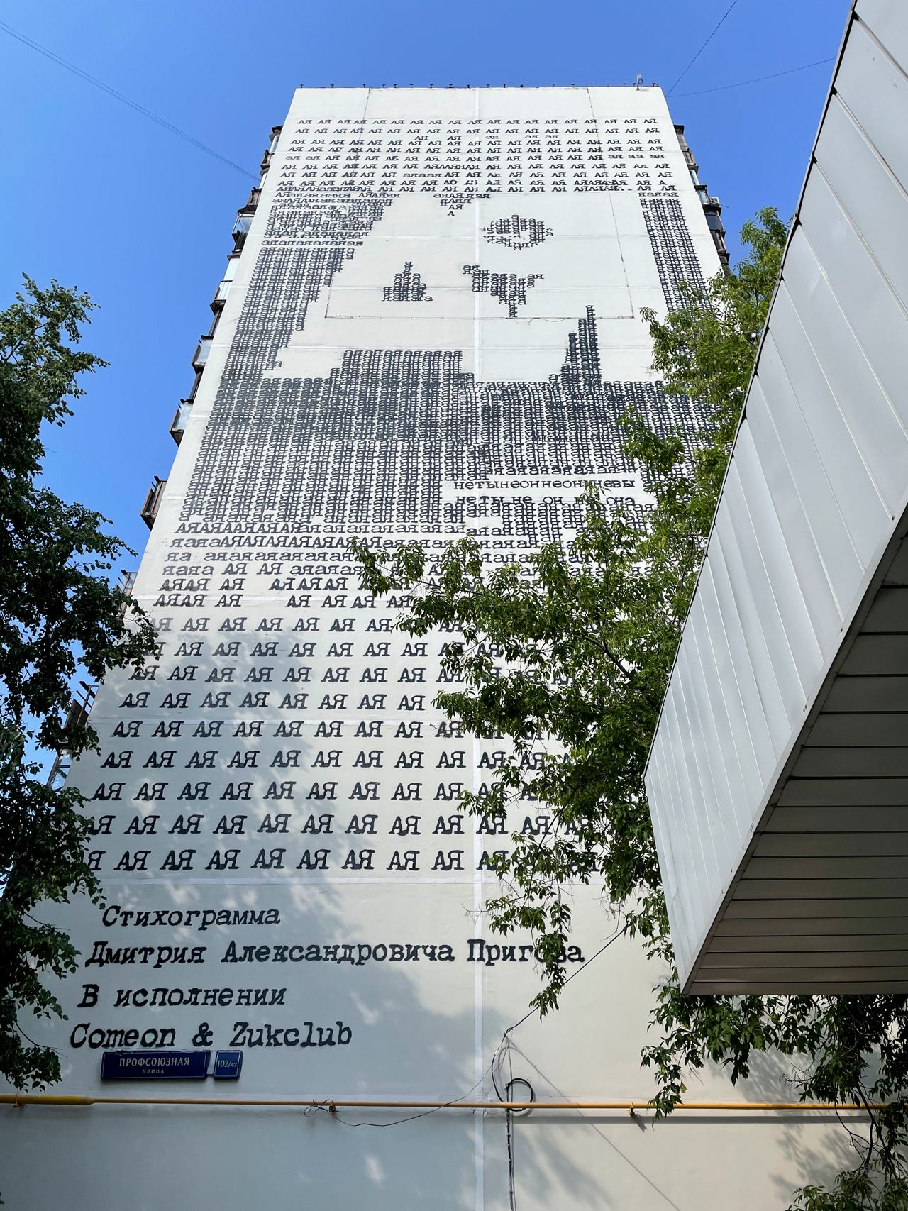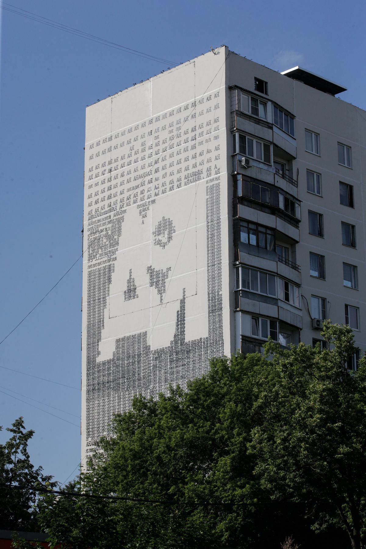 В Москве закрасили, а потом сразу восстановили мурал «АЯ» — символ Беляево в виде огромной стихограммы Дмитрия Пригова