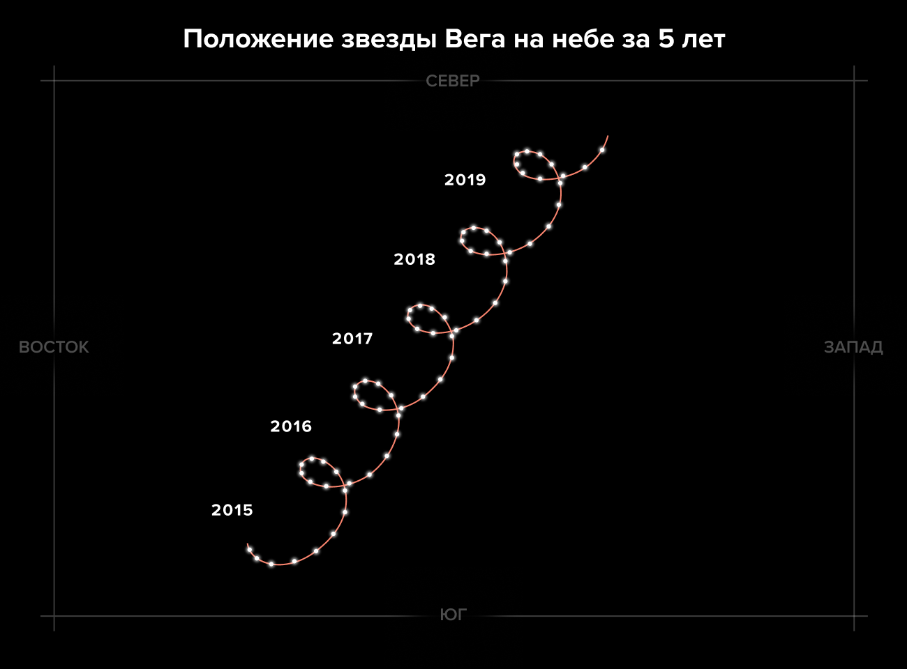 Прежде всего ее положение в трехмерном пространстве, а также скорость — чтобы понимать, как положение меняется со временем. Проще всего ситуация с двумя координатами положения на небесной сфере: достаточно покрыть небесную сферу сеткой широты и долготы — и тогда у каждого объекта, видимого телескопом, появится своя пара координат.