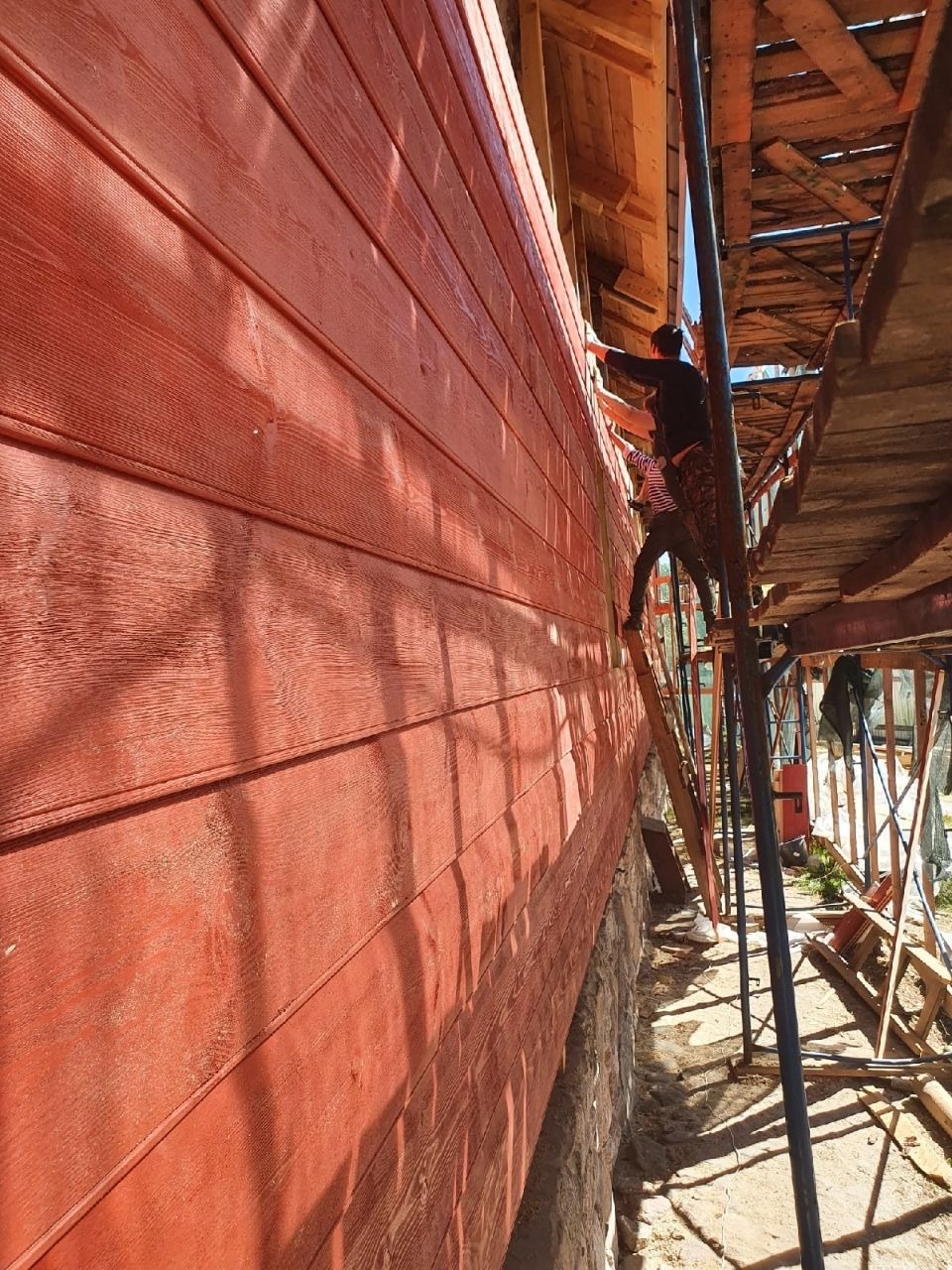 Монтаж наружной обшивки храма Святой Варвары начали реставраторы в Печорах: как сообщили в АНО «Возрождение объектов культурного наследия в Пскове (Псковской области)», брашированная доска, то есть приближенная по внешней фактуре к исторической, имеет рельеф.