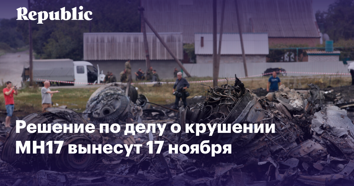 Окружной суд Гааги (Нидерланды) 17 ноября вынесет вердикт по делу о крушении в 2014 году малайзийского Boeing (рейс MH17) на востоке Украины. Об этом говорится в официальном аккаунте судебного процесса в Twitter. Вынесение приговора займет примерно полдня.