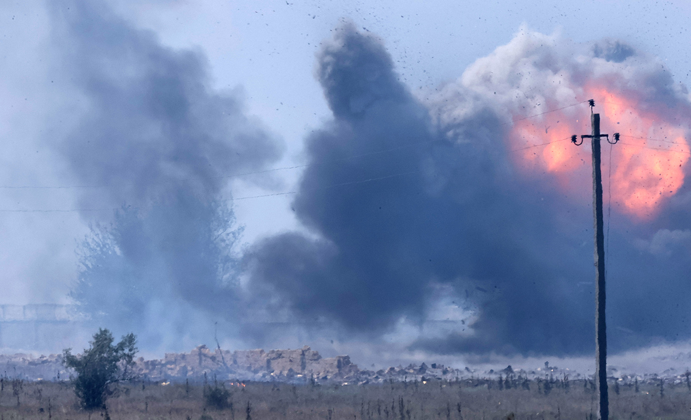 В Крыму снова взрывы — ровно через неделю после уничтожения самолетов на аэродроме в Саках. На этот раз Минобороны России связало взрывы на складе боеприпасов не с «нарушением правил пожарной безопасности», а с «диверсией». Сегодня же загорелась трансформаторная станция, один из основных узлов, по которому электричество поступает на полуостров (в Минэнерго говорят, что снабжение не нарушено). К полудню дым и взрывы заметили над поселком Гвардейское под Симферополем, там расположен военный аэродром. На этом фоне туристы начали покидать полуостров, но местные власти и туроператоры уверяют, что их число незначительно.