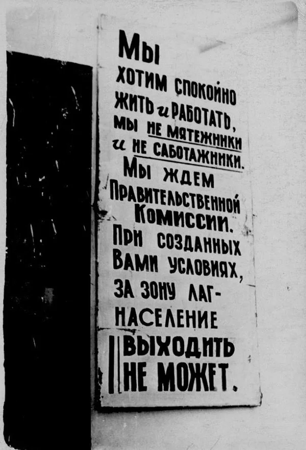 Никаких вооружённых бунтов и захватов городов. Лозунги 3-го лаготделения: «Долой тюрьмы и лагеря!», «Требуем возвратить нас к нашим семьям!». 6-го: «Свободу — народам и Человеку!»; 1-го: «Слава Коммунистической партии!», «Да здравствуют мир и дружба всех народов!».