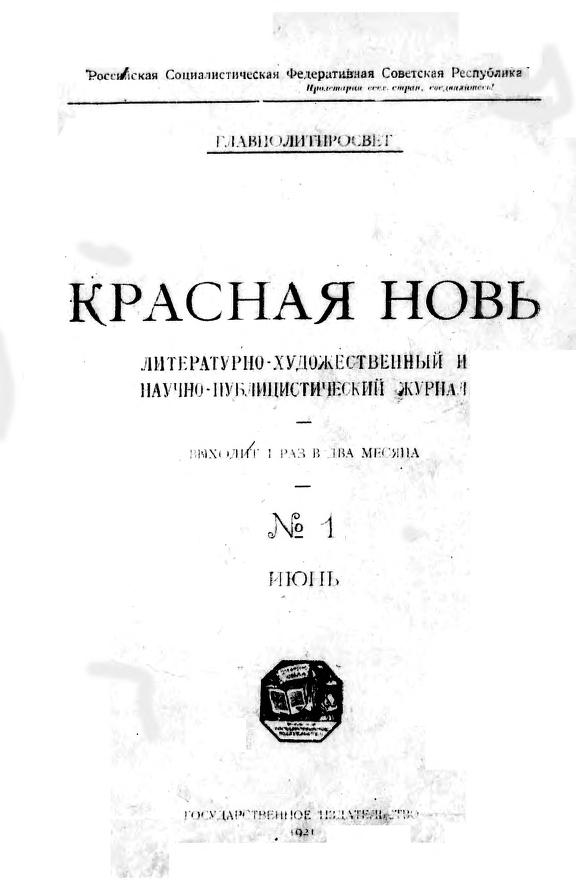 Решение этой задачи, пишет Корниенко, возлагалось не только на государственные органы, но и на первый советский толстый литературный журнал «Красная новь», созданный в 1921 году.