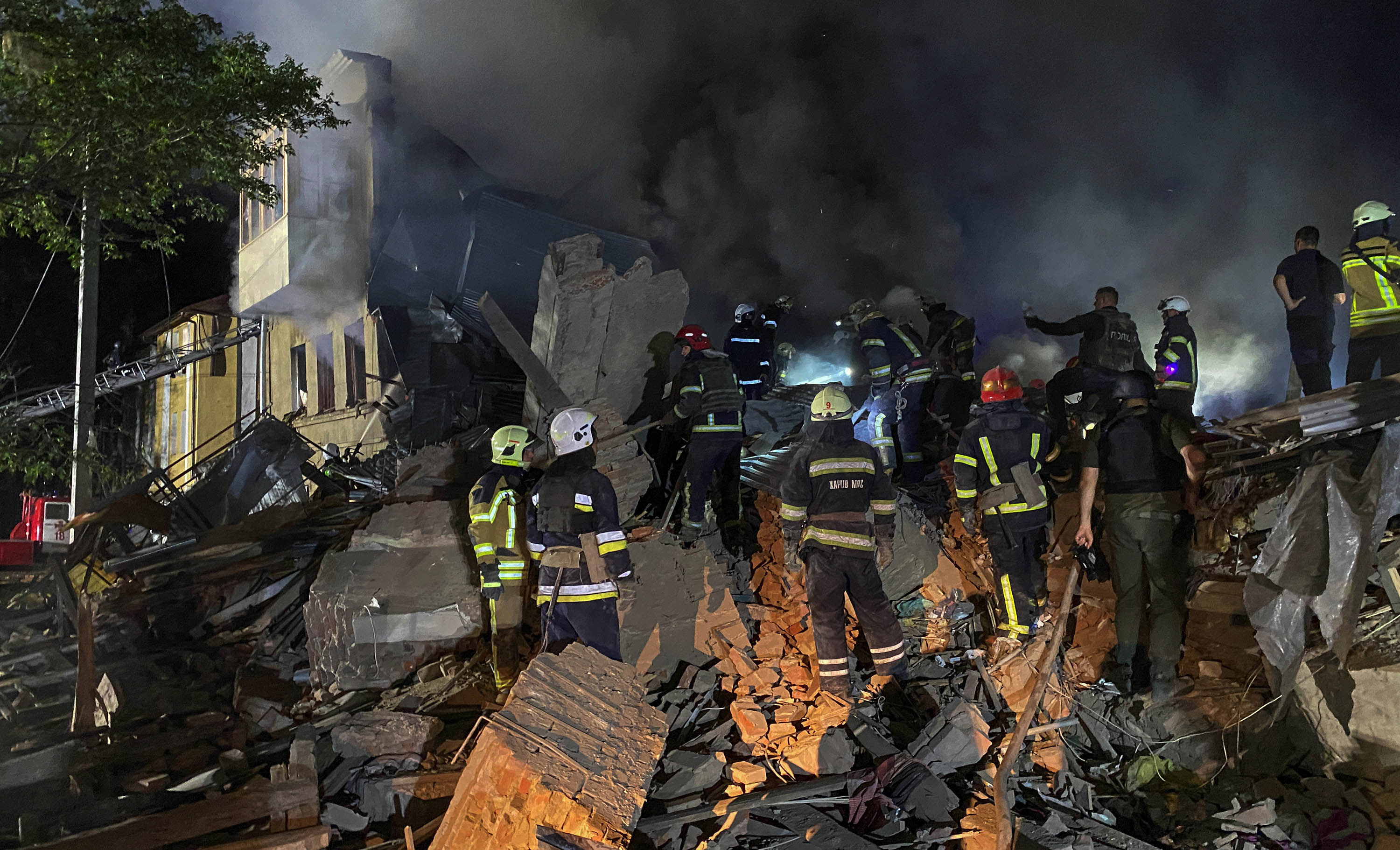 В Слободском районе ракета попала в трамвайное депо, разрушенными оказались ремонтный цех и четырехэтажное общежитие, стоявшие вплотную друг к другу. Погибли три человека. 18, в том числе 13-летние мальчик и девочка, получили ранения. Спасатели продолжают разбирать завалы. В Холодногорском районе ракета попала по дому культуры. Начался сильный пожар общей площадью 4 200 квадратных метров, сообщает областная прокуратура. Она завела дело по статье о законов и обычаев войны с умышленным убийством.
