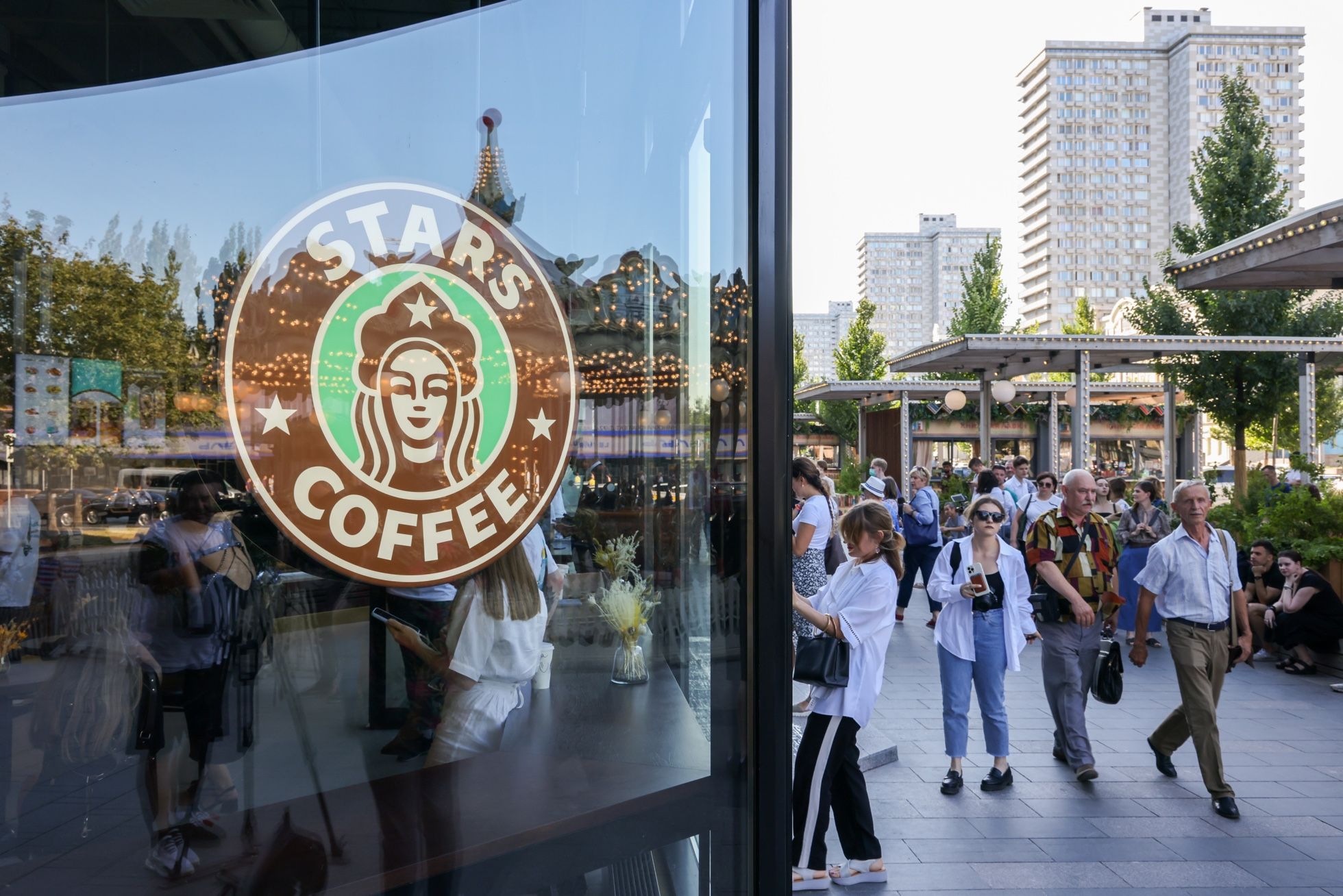 Антон Новодережкин / ТАСС 18 августа на Новом Арбате открылась первая кофейня Stars Coffee — раньше на этом месте был Starbucks. Американская компания объявила о своем уходе из России в конце мая, а в июле стало известно, что активы Starbucks купят Тимур Юнусов (рэпер Тимати) и ресторатор Антон Пинский. Позже совладельцы провели ребрендинг компании — на логотипе сети вместо русалки теперь изображена девушка в кокошнике с пятиконечной звездой. Новое название кофеен выбирали из трех вариантов: Stars Pinskiy Coffee, Stars Kanokov Coffee и Stars Coffee.