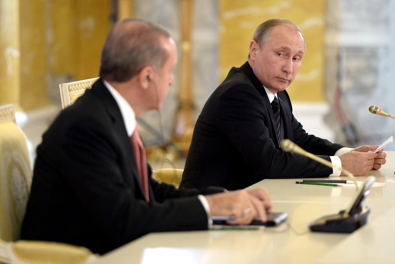 Одним из первых, кто после путча 2016 года позвонил Эрдогану и выразил ему свою поддержку, был Владимир Путин. Он пригласил турецкого коллегу к себе, и свой первый заграничный визит после попытки переворота (всего через две недели после событий) Эрдоган совершил именно в Россию. Владимир Путин, в отличие от западных политиков, не осуждал Эрдогана за репрессии, которые тот начал после 16 июля. Как отмечает Сонер Чагаптай, Эрдогана неслучайно пригласили именно в Санкт-Петербург. Путин принял турецкого президента в Греческой гостиной Константиновского дворца в Стрельне (что вряд ли было случайностью, учитывая исторически натянутые отношения Турции и Греции). «Путин как бы пытался сказать: „Вот, смотри, мы в городе Екатерины Великой, которая долго воевала с Турцией, а я, Владимир Великий, готов дружить“», — объясняет Чагаптай.