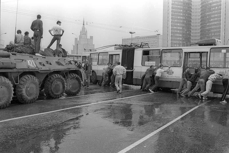 Во главе сопротивления встал президент РСФСР Борис Ельцин, который призвал россиян противостоять попытке захвата власти. Сотни тысяч людей несколько дней выходили на улицы российских городов, а главные события происходили у Белого дома в Москве. И хотя августовские события в целом были мирными, без жертв не обошлось: три демонстранта погибли — фактически раздавлены БМП в районе Нового Арбата. В итоге указами Ельцина создание ГКЧП было квалифицировано как попытка госпереворота, а союзные органы исполнительской власти были переподчинены президенту РСФСР. 22 августа ГКЧП был ликвидирован, а его члены арестованы. Августовские события предрешили дальнейшую судьбу СССР: в декабре 1991-го он прекратил существование. К годовщине путча «Свободное пространство» публикует материал о событиях тех дней, эхо которых сейчас стало громче.