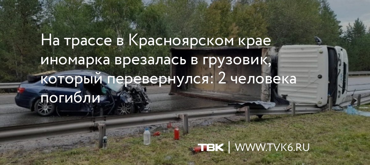 Авария произошла вечером 19 августа на трассе Р-257 «Енисей» под Минусинском. По предварительным данным ГИБДД, 43-летний водитель грузовика ехал со стороны села Шушенского в сторону Минусинска. По пути фура опрокинулась на дорогу из-за чего в нее въехала иномарка, которая двигалась по «встречке».