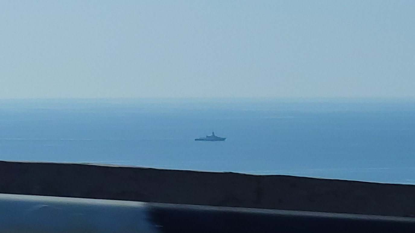 В этом же месте вдоль бухты Ласпи на восток двигался патрульный корабль проекта 22160 типа «Василий Быков». В составе Черноморского флота есть четыре патрульных корабля проекта 22160: «Василий Быков» (бортовой номер 368), «Дмитрий Рогачев» (375), «Павел Державин» (363) и «Сергей Котов» (383).