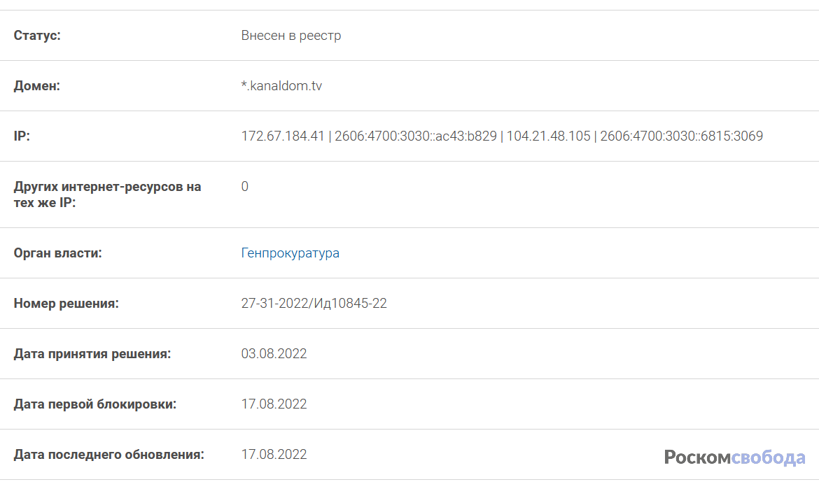 Блокировка сайта осуществляется по «маске» (*), а значит доступ ограничивается ко всем его доменам и поддоменам, инициатор запрета — Генеральная прокуратура РФ: