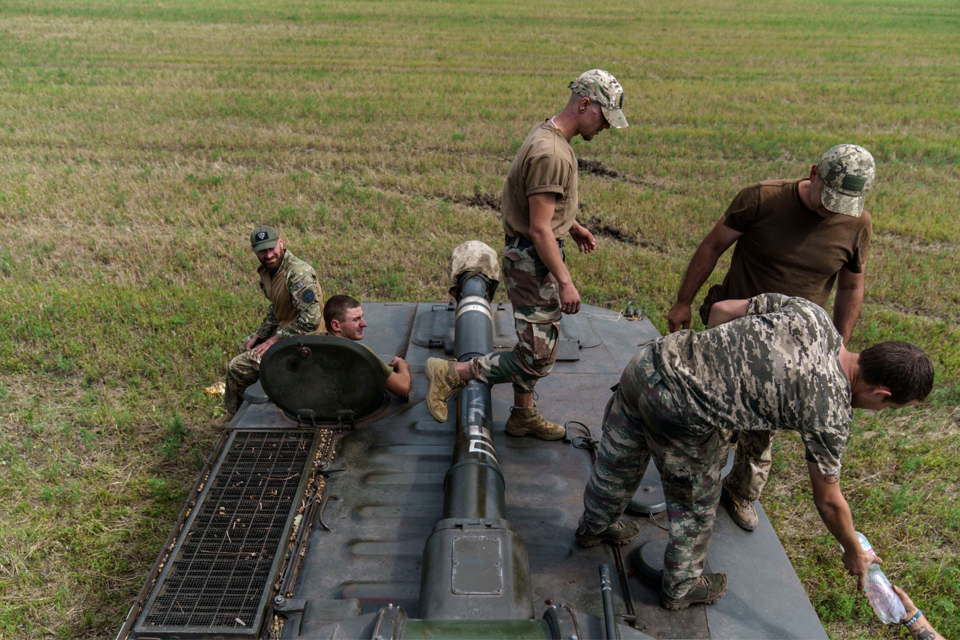 Украинские танкисты отдыхают во время тренировки в Донецкой области, 22 августа