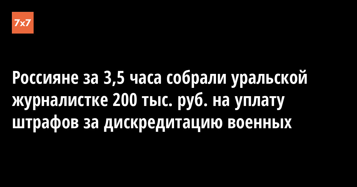 Россияне за 3,5 часа собрали уральской журналистке 200 тыс. руб. на уплату штрафов за дискредитацию военных
