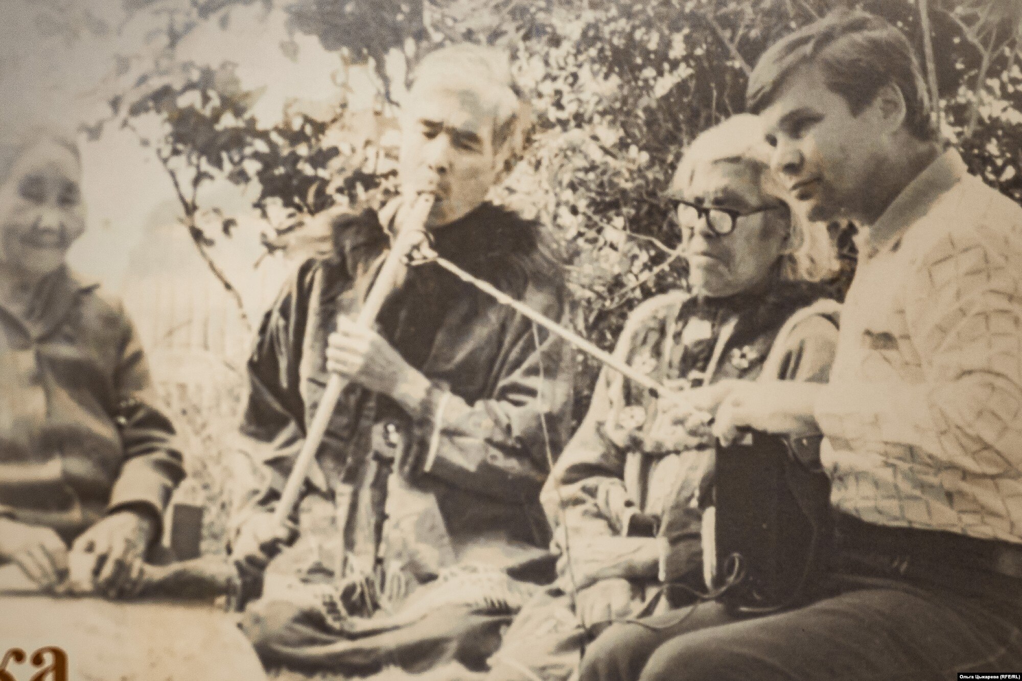 – Моя мама уже не знала ительменского, – рассказывает Мария Киле. – Она вспоминала, что мои бабушка с дедушкой общались по-ительменски только дома и шепотом. Я бабушку не застала, но знаю, что она помогала ученым составлять нашу азбуку. Правда, вот здесь, на снимке, она с бубном – у нас такого не было, у ительменов, это заимствованное от коряков.