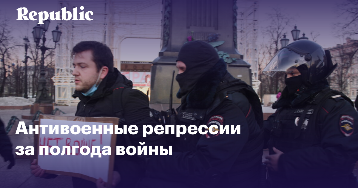 «ОВД-Инфо» опубликовало (*внесено в реестр иноагентов) аналитический обзор беспрецедентных репрессий за антивоенные позиции, которые были зафиксированы за прошедшие полгода с начала российского вторжения в Украину. Отчет показывает, как в стране фактически установилась диктатура, при которой арестовывают активистов и независимых политиков, массово заводятся дела на обычных граждан, несогласных с действиями властей, блокируются неугодные СМИ и правозащитные организации, составляются списки «неблагонадежных» артистов, чьи мероприятия теперь отменяются.