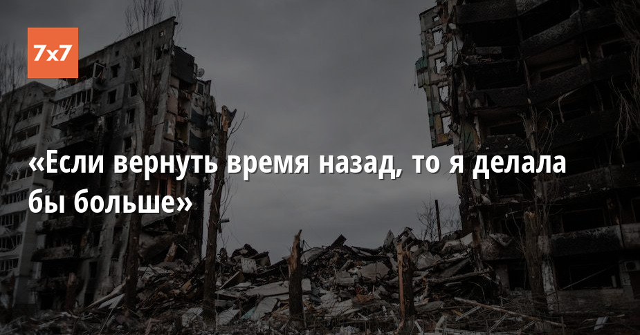 Я с Дальнего Востока. Я полгода молча наблюдала, как вывозят технику на запад… Я знала, о чем кричат все разведки мира, но я не могла поверить. Мы и 24 февраля узнали об этом первые. Пока вся Россия спала, мы уже наблюдали взрывы, но я не могла в это поверить! Если вернуть время назад, то я делала бы больше: больше постов, больше разговоров, больше разоблачения лжи в ТВ. Однозначно я сделала бы больше.