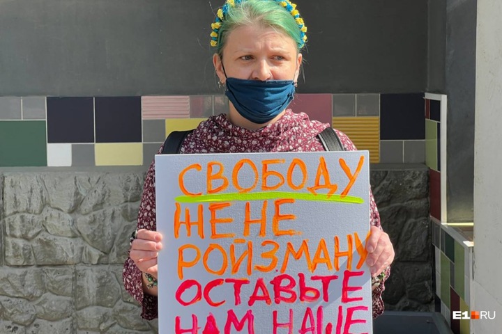 14:30 Жительница Екатеринбурга вышла на пикет в поддержку Ройзмана.