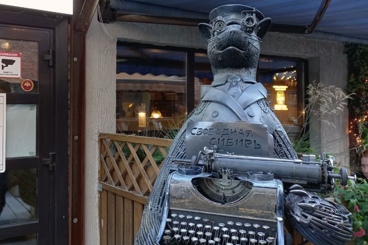 19:07 Перед одним из заведений в Новосибирске появилась такая скульптура. Она раньше могла стоять внутри здания. Фото от читателя.