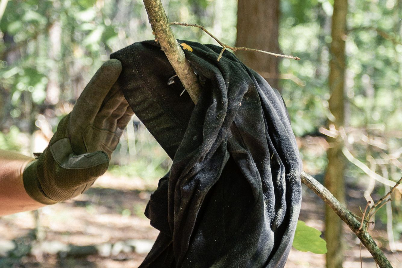 A forest near Bucha. A barely noticeable grenade pin sits among the leaves. Me and Roma (the leader of the Kyiv sapper team) were chatting and walking about 15 meters (50 feet) from the road when he spotted the pin on a branch. “That means there must be a grenade somewhere nearby,” he told me. For 30 seconds, we stood still as he looked around. Finally, he spotted a pair of pants hanging on the same tree (see below). Roma used a knife to carefully lift one of the pant legs, revealing a live grenade underneath — a booby trap. The feeling that death was so close to us and had been planted so deceitfully… We were literally standing 30 centimeters (12 inches) from it. I realized I could very easily have grazed it. If I had touched it, Roma and I would have been blown up right there. Before that, I didn’t feel particularly unsafe. But after our encounter with this tripwire bomb, I started paying close attention to where I stepped, looking out for items that looked either unusual or too ordinary.The unfastened safety pin just visible under these pants was inserted into the grenade instead of a grenade pin because it’s even more sensitive. Attached to the safety pin is a wire, and the wire is attached to the pants. You touch the pants, and the grenade explodes.Roma defuses the grenade. The first thing he did was close the safety pin so it wouldn’t slip out and detonate the bomb. Then he wrapped a plastic ribbon around the grenade, fastening it to the branch, and pulled the fuse out and unscrewed it.