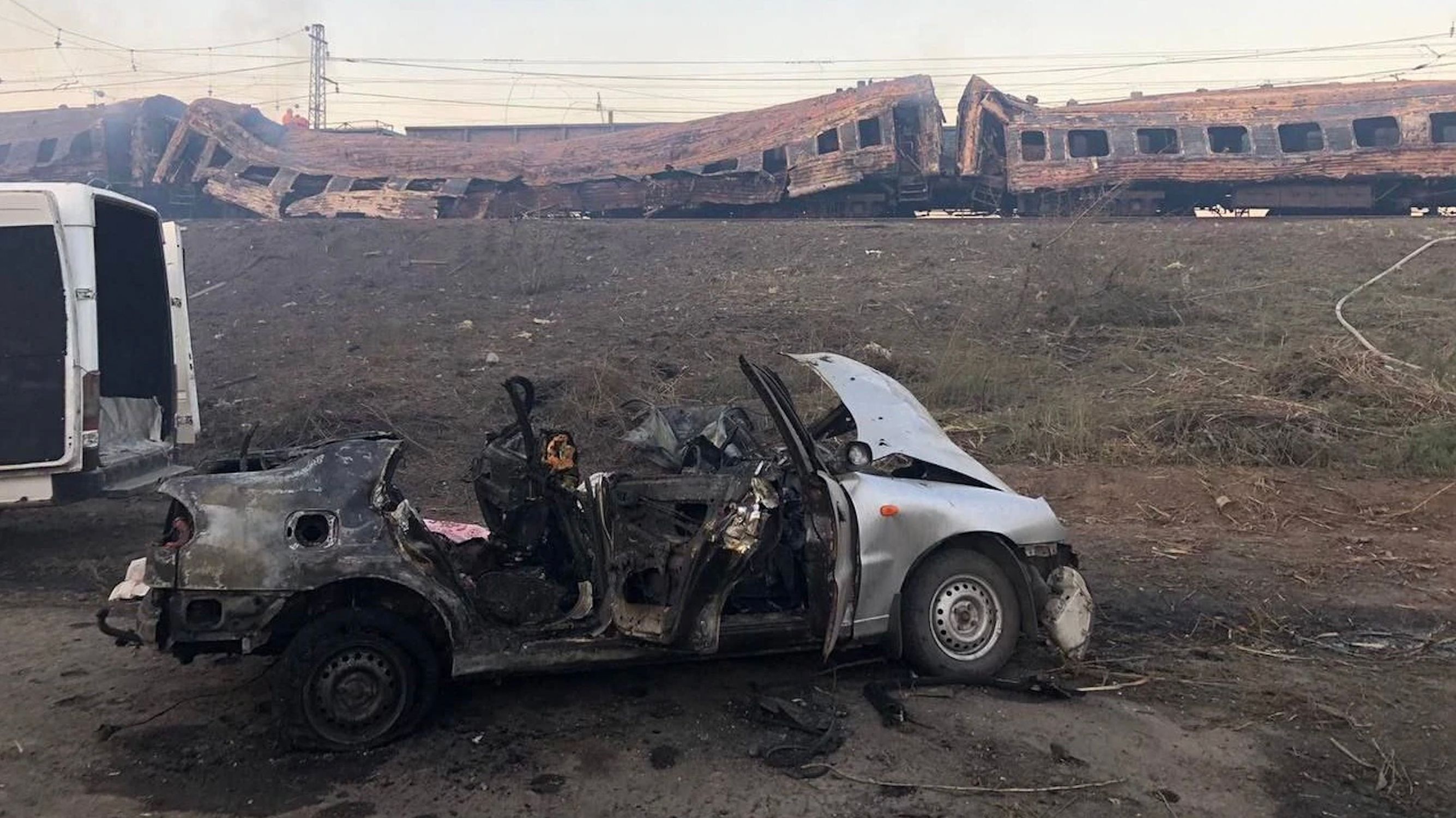 Фотокорреспондент АР запечатлел пассажирский вагон на станции Чаплино в Днепропетровской области, поврежденный ракетным ударом 24 августа. По сведениям украинских властей, в результате этого обстрела погибли 25 человек, в том числе двое детей. Минобороны РФ подтверждало ракетный удар по Чаплино, заявив, что он был нанесен по военному эшелону. «В результате прямого попадания ракеты „Искандер“ уничтожено свыше 200 военнослужащих резерва ВСУ и 10 единиц военной техники, следовавших в зону боевых действий на Донбассе», — говорилось в сводке российского ведомства.