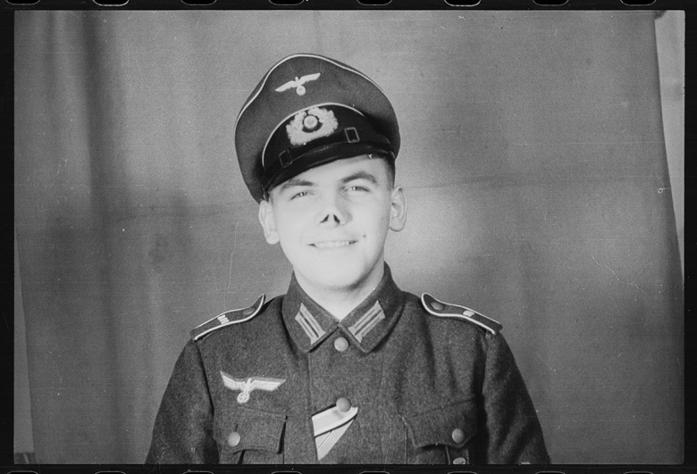 Портрет немецкого военного вермахта в звании ефрейтор. На пуговице висит лента награды Железный Крест, на груди справа знак за ранение I степени и нагрудный квалификационный спортивный знак «DRL». Германия. 1941 г. Фото: автор неизвестен / частная коллекция Артура Бондаря