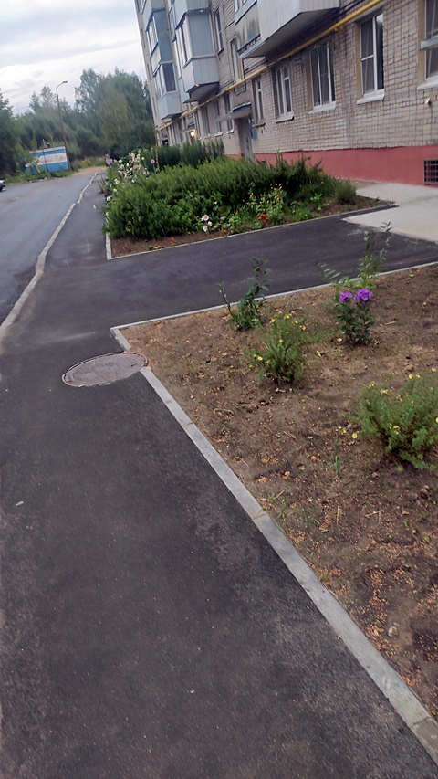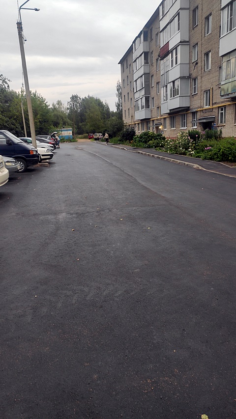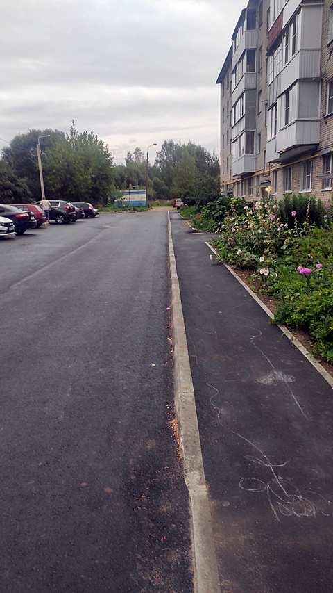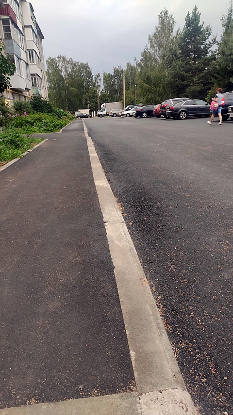 Новый асфальт, новые бордюры с необходимым "занижением" для маломобильных граждан, аккуратные стоянки - все сделано.