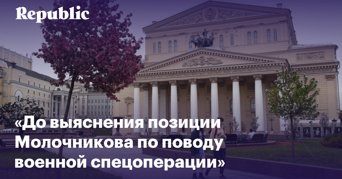 «Сообщаем, что ранее запланированное участие Молочникова А.А. в постановке двух одноактных опер на сцене Большого театра в сезоне 2022–2023 годов отменено», — ответил Урин на запрос Дмитрия Кузнецова (цитата по News.ru).
