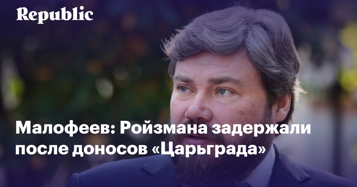 «Евгений Ройзман задержан. Правоохранительные органы наконец занялись русофобами, подлинными врагами русской государственности. Нет сомнений, задержание в значительной степени связано с инициативой правозащитного центра общества "Царьград" по проверке дела Ройзмана», — написал Малофеев в соцсети «ВКонтакте».