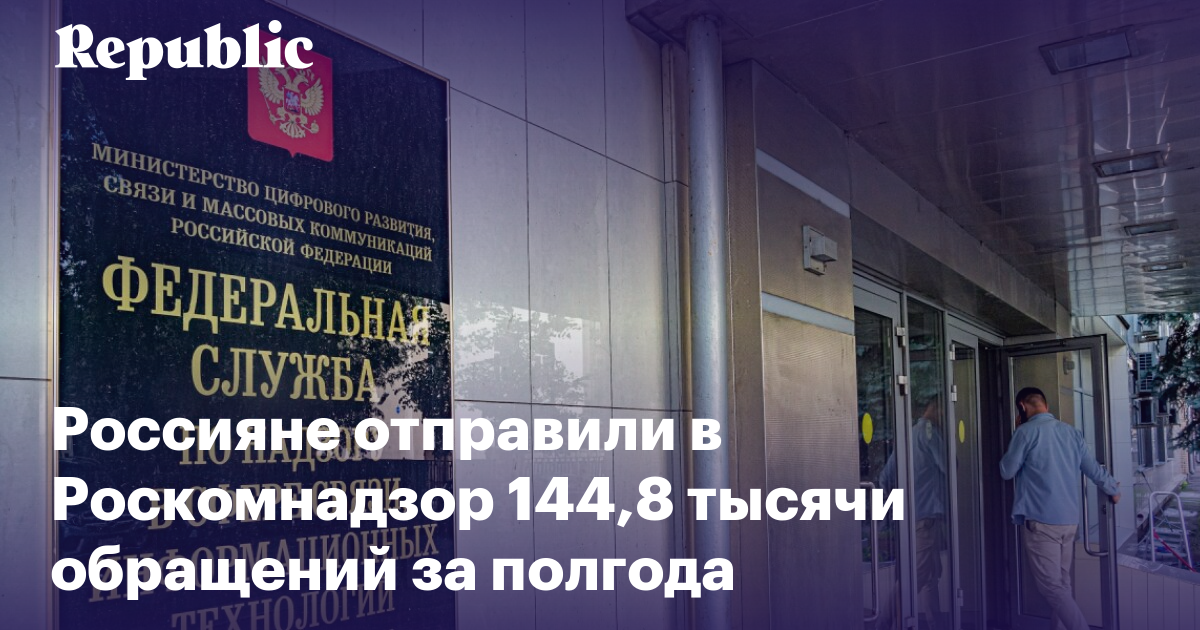 За первые шесть месяцев 2022 года россияне отправили в Роскомнадзор 144,8 тысячи обращений — на 25,5% больше, чем за аналогичный период прошлого года. Количество заявлений о фейках в интернете выросло в два раза. Об этом сообщается на сайте регулятора.