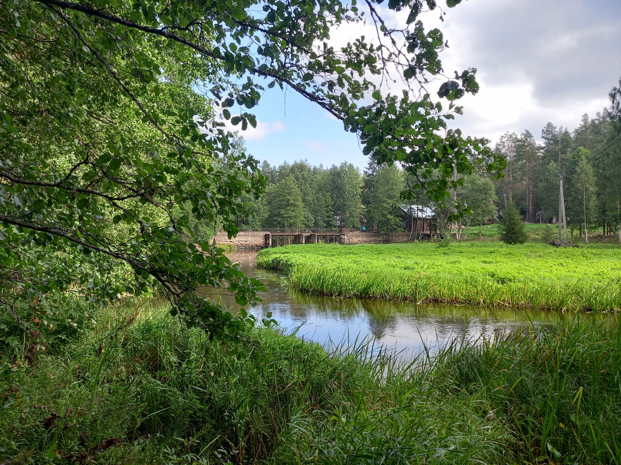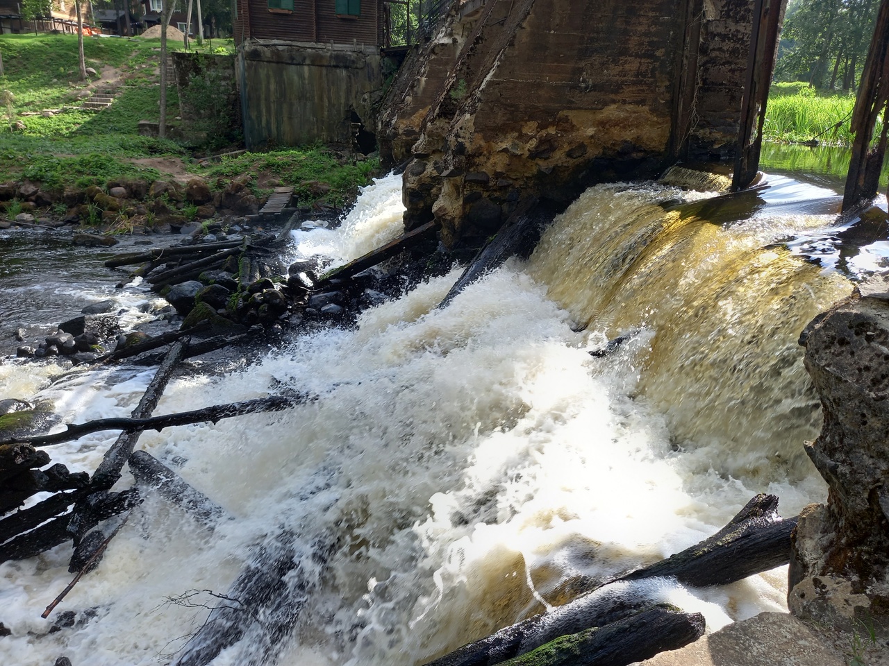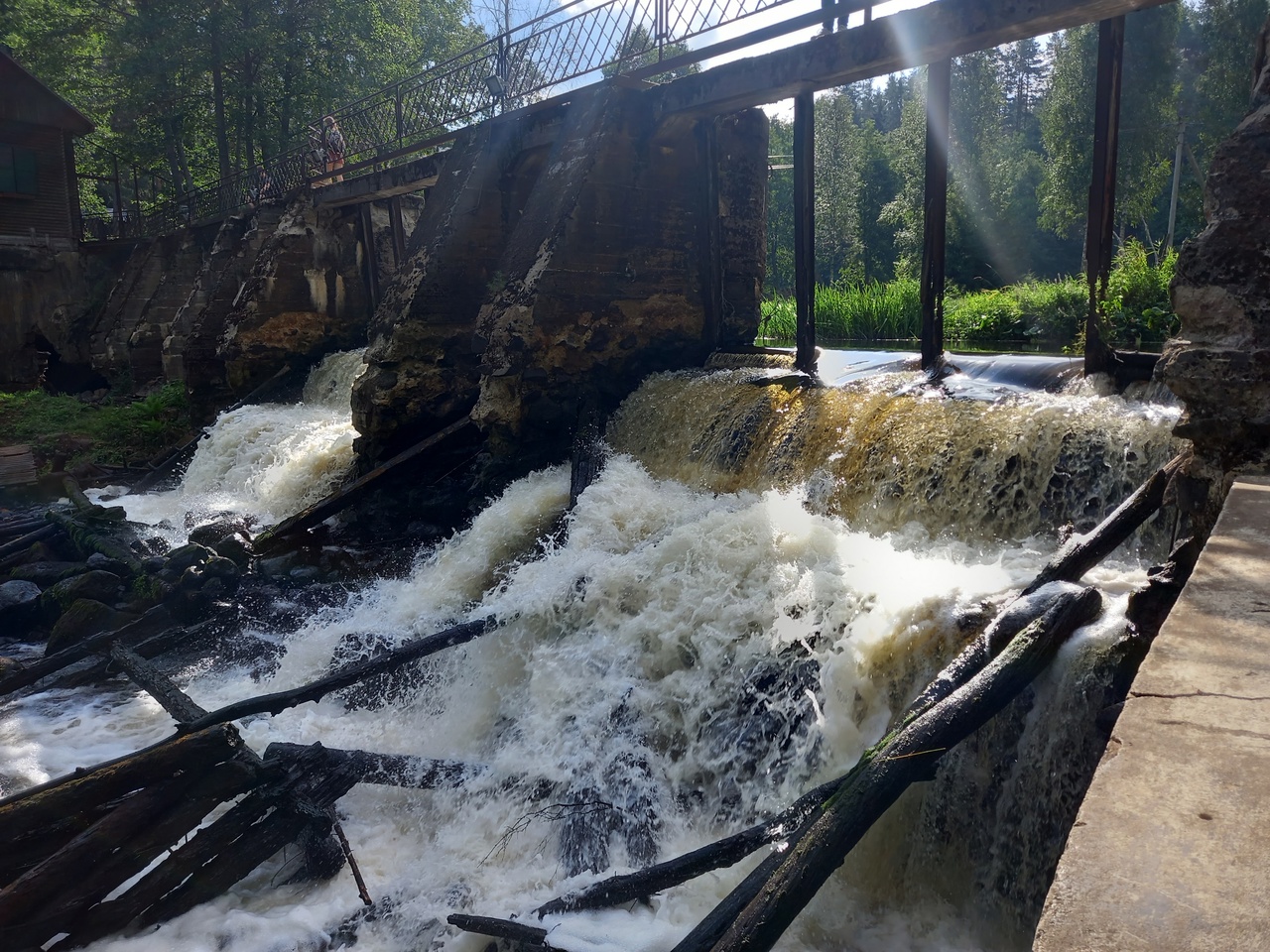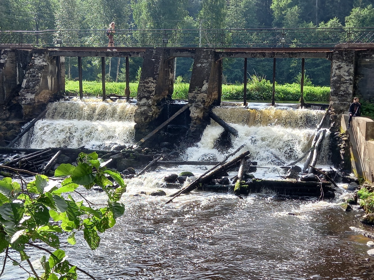 Идем по тропе вдоль реки к плотине от бывшей гидроэлектростанции, построенной еще в те времена, когда здесь была Финляндия. Лучше заходить туда с этого берега, потому что с другого берега - туристическая база.