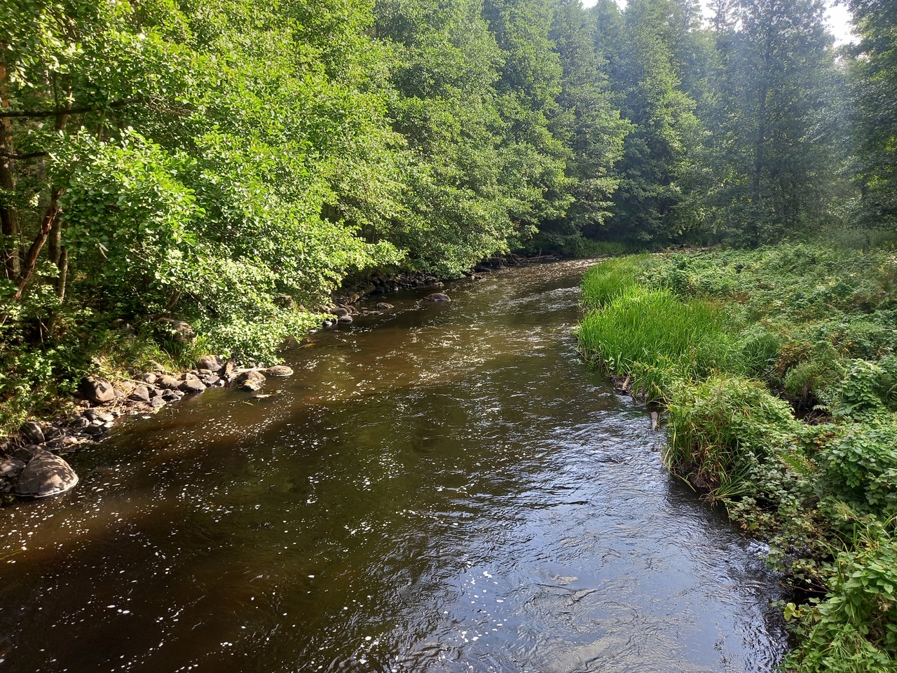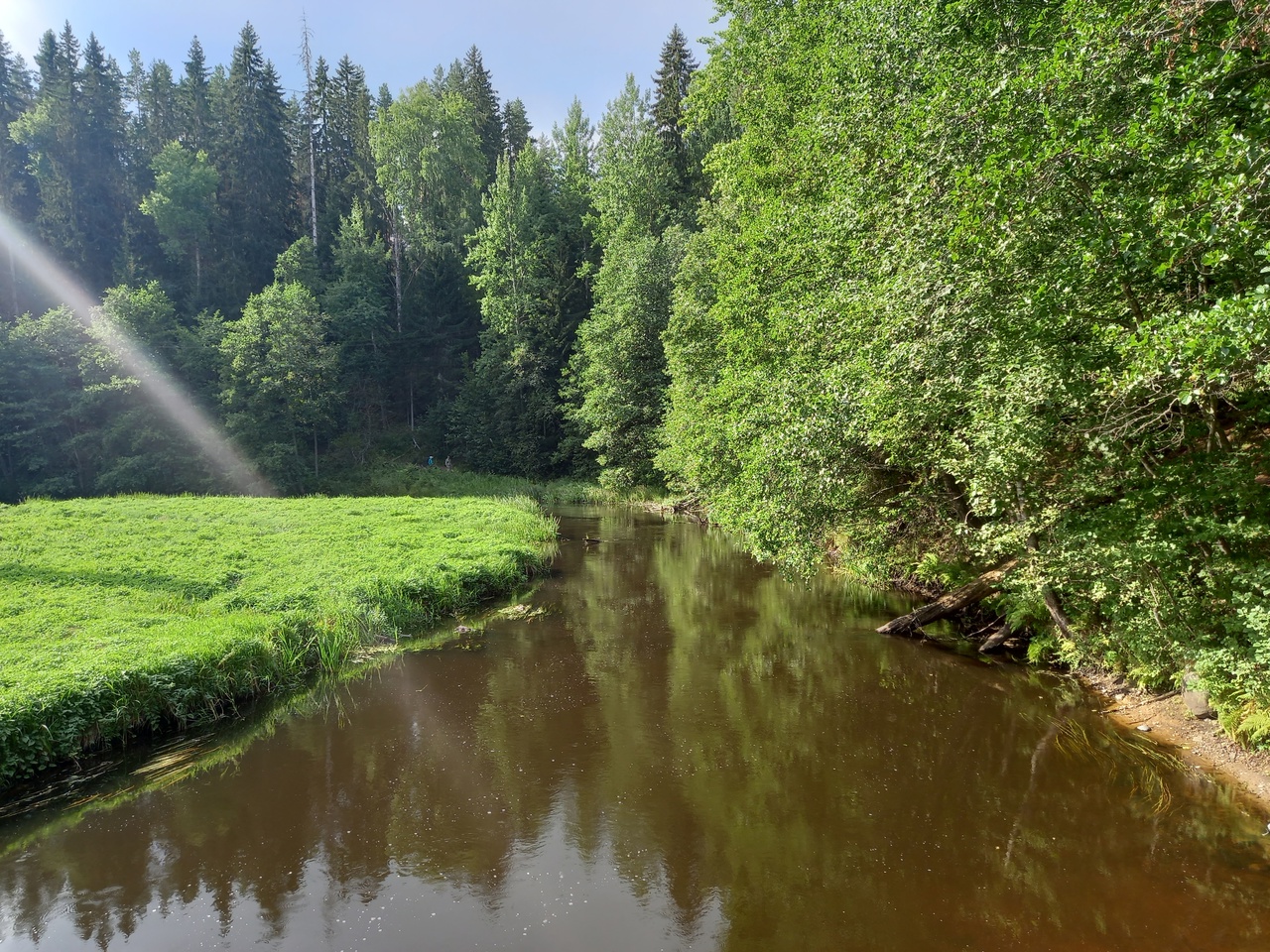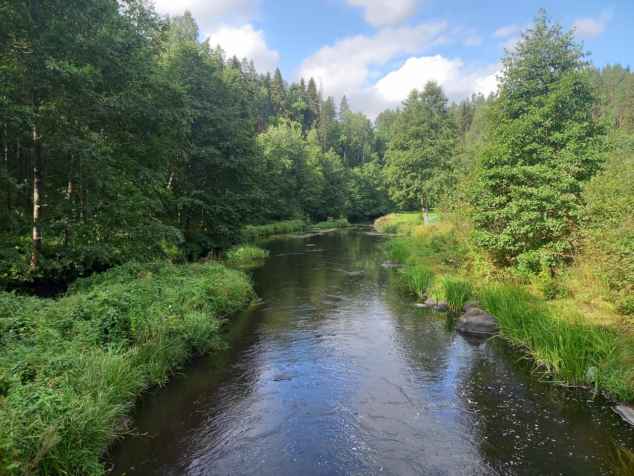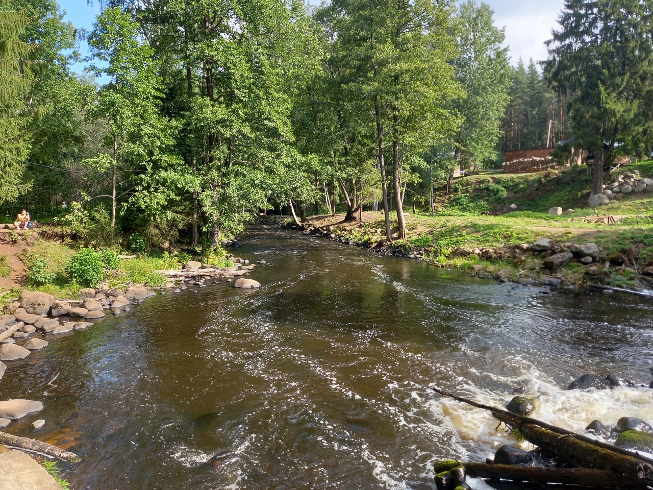 Идем по тропе вдоль реки к плотине от бывшей гидроэлектростанции, построенной еще в те времена, когда здесь была Финляндия. Лучше заходить туда с этого берега, потому что с другого берега - туристическая база.