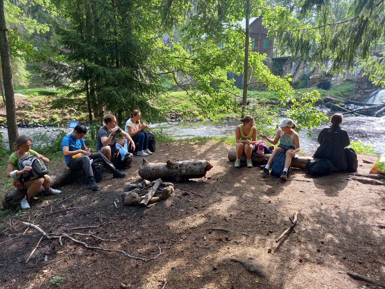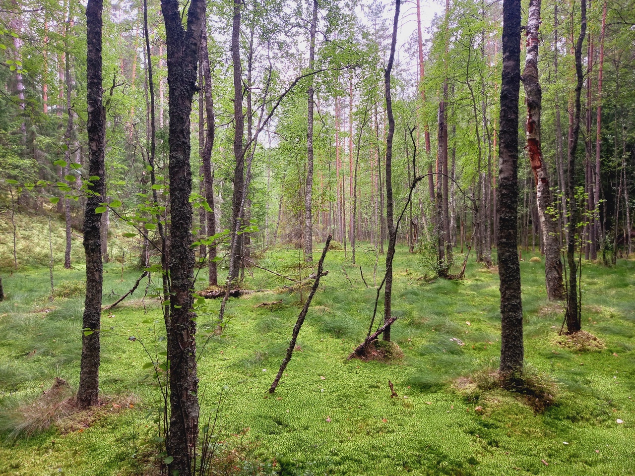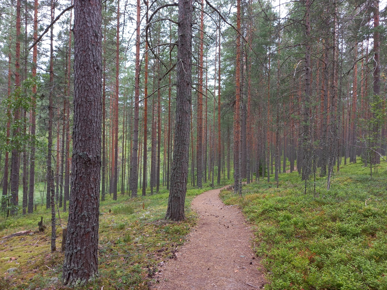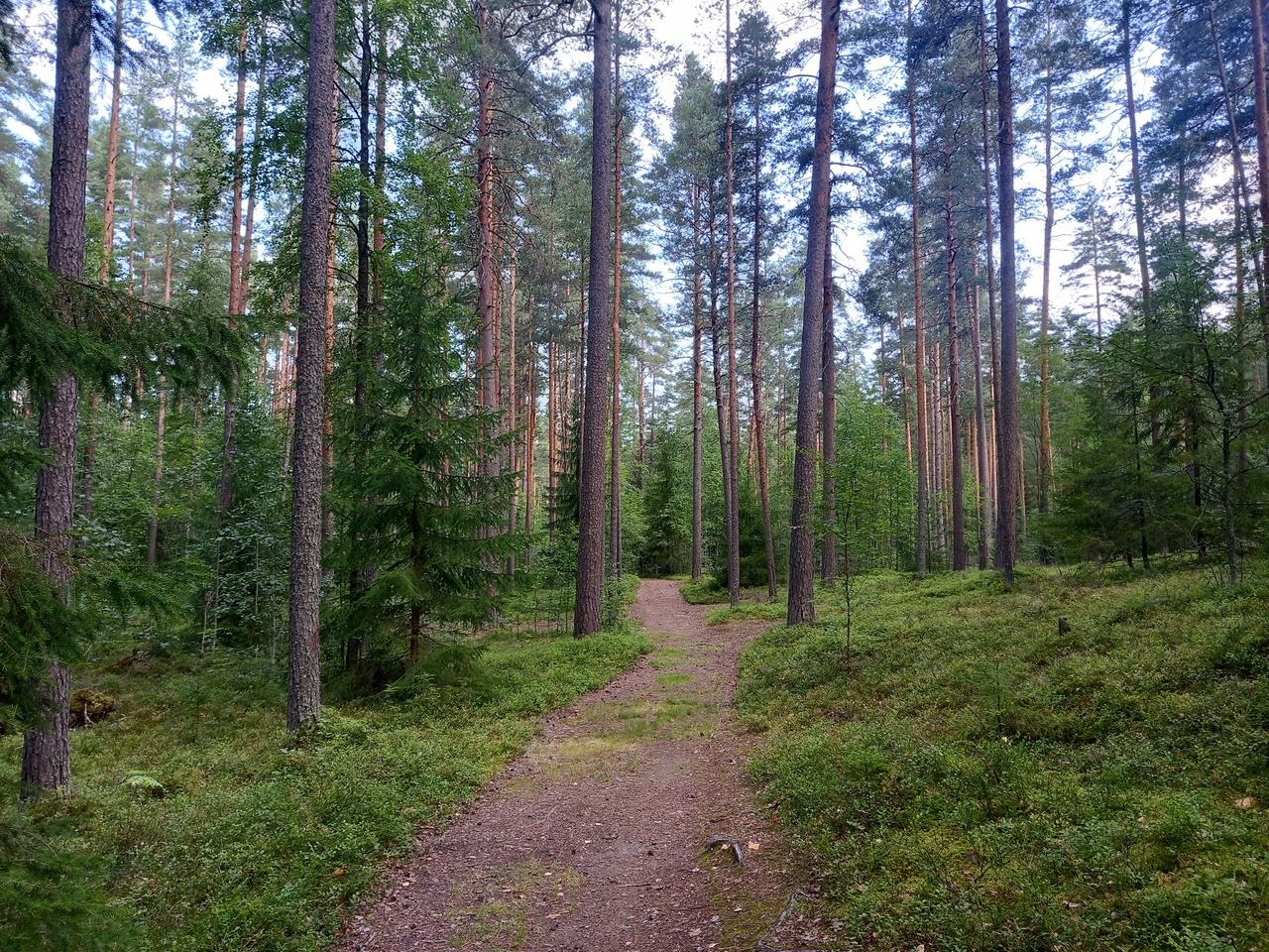 На электричке от Финляндского вокзала мы доехали до станции «Петяярви», откуда начинаются многие популярные туристические маршруты. Большинство туристов ходят только на реку Волчью, и им этого достаточно, но для нас это будет лишь началом пути. Заходим в красивый лес.
