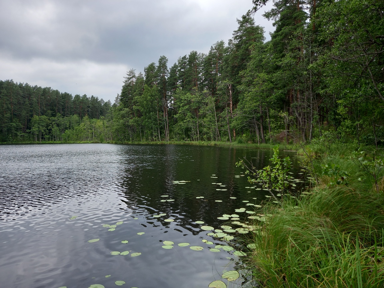 Живописное озеро. Людей на нем не было. С трассы «Сортавала» сюда нет заездов, а пешком люди от станции не любят ходить - им далеко.
