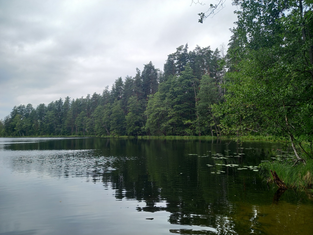 Дошли до конца Берестовых озер. В конце уже заболоченная часть озера с торфяной водой. Тут мы видели только рыбаков, туристы тут не отдыхают.