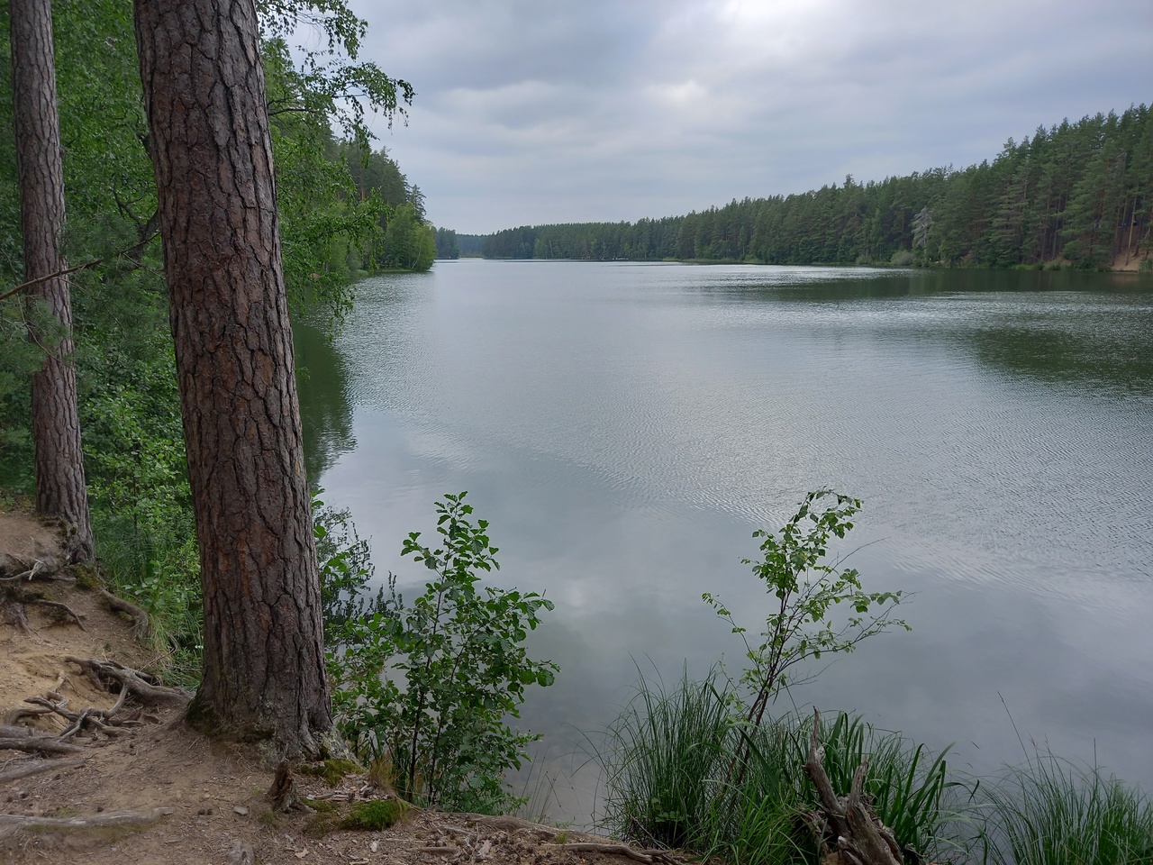 Рядом с ней подход к воде. Оттуда видно узкую протоку, соединяющую Восточное Берестовое озеро с Западным Берестовым.