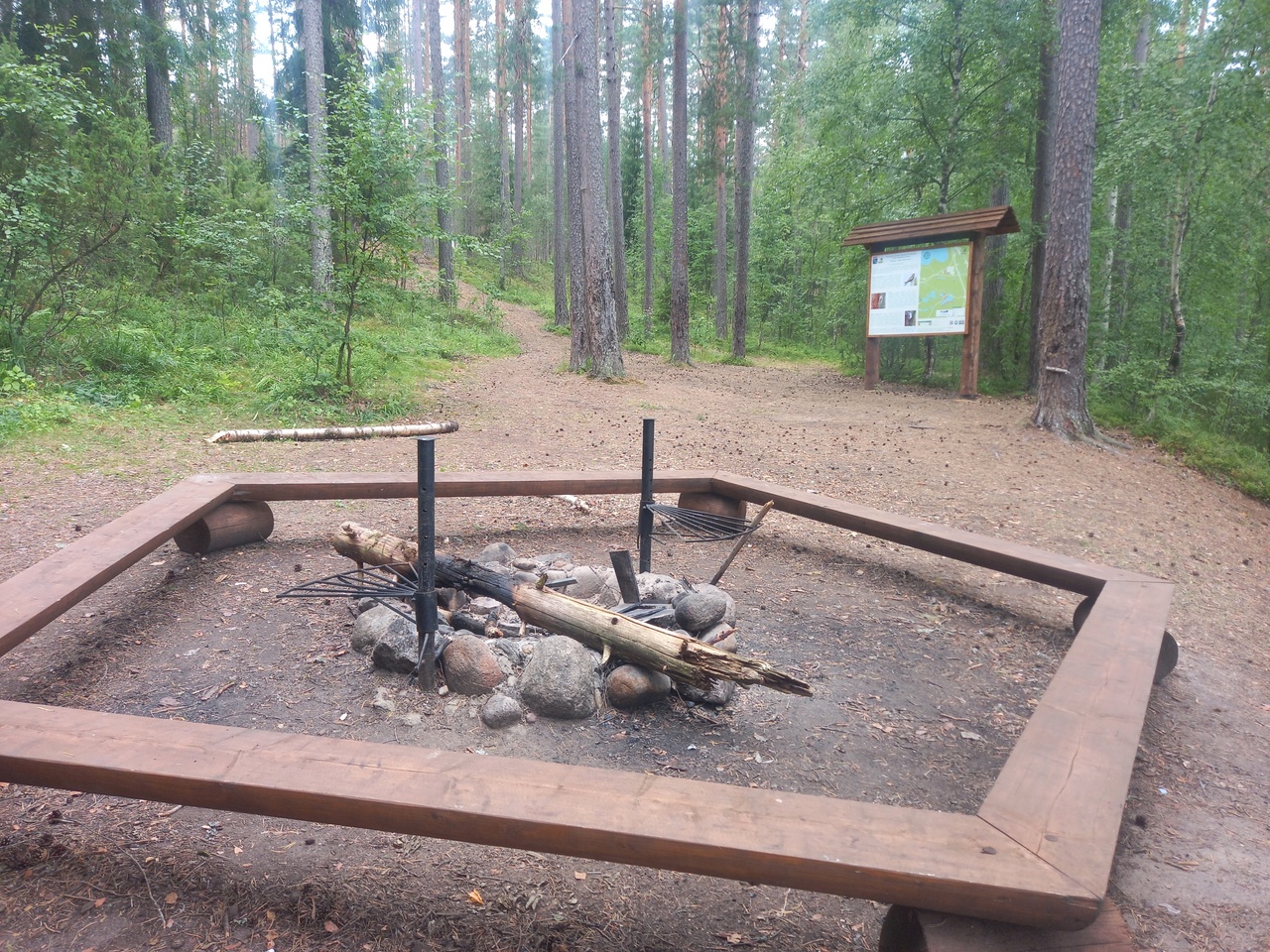 В самой дальней части озера официальная туристическая стоянка с местом для костра, сделанная руководством заказника. По закону, костер разжигать можно только здесь.