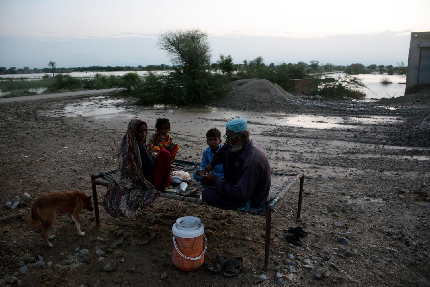 Asif Hassan / AFP / Scanpix / LETA Женщина готовит на костре лепешки в импровизированном лагере для людей, которых наводнение лишило крова. Округ Наушахро-Ферозе, провинция СиндFaisal Kareem / EPA / Scanpix / LETA Жители провинции Пенджаб ждут помощи