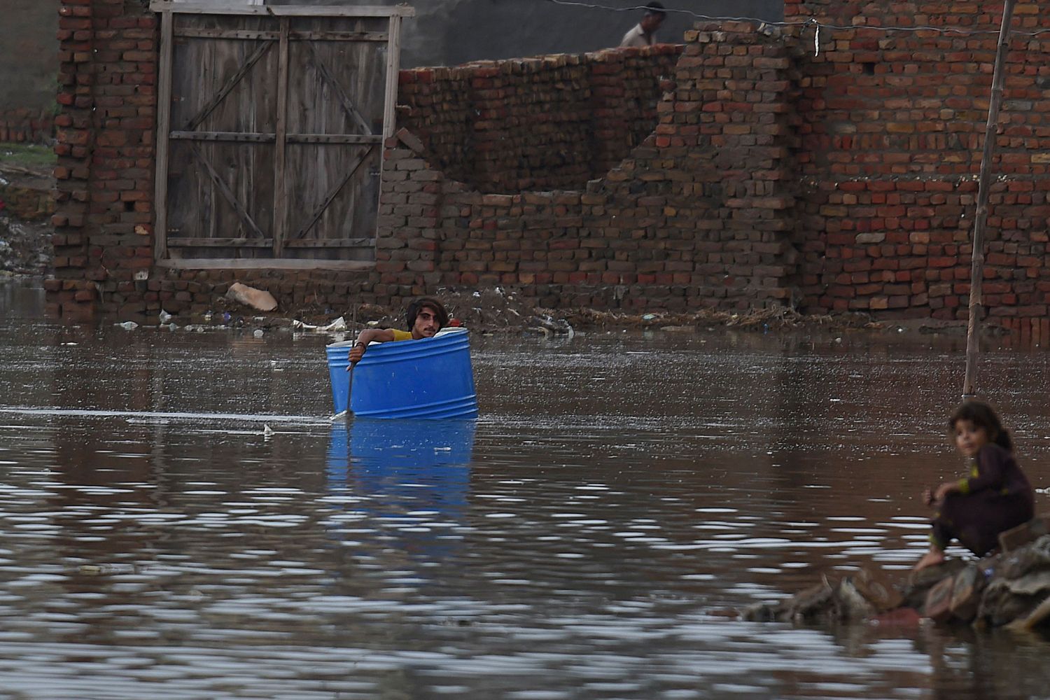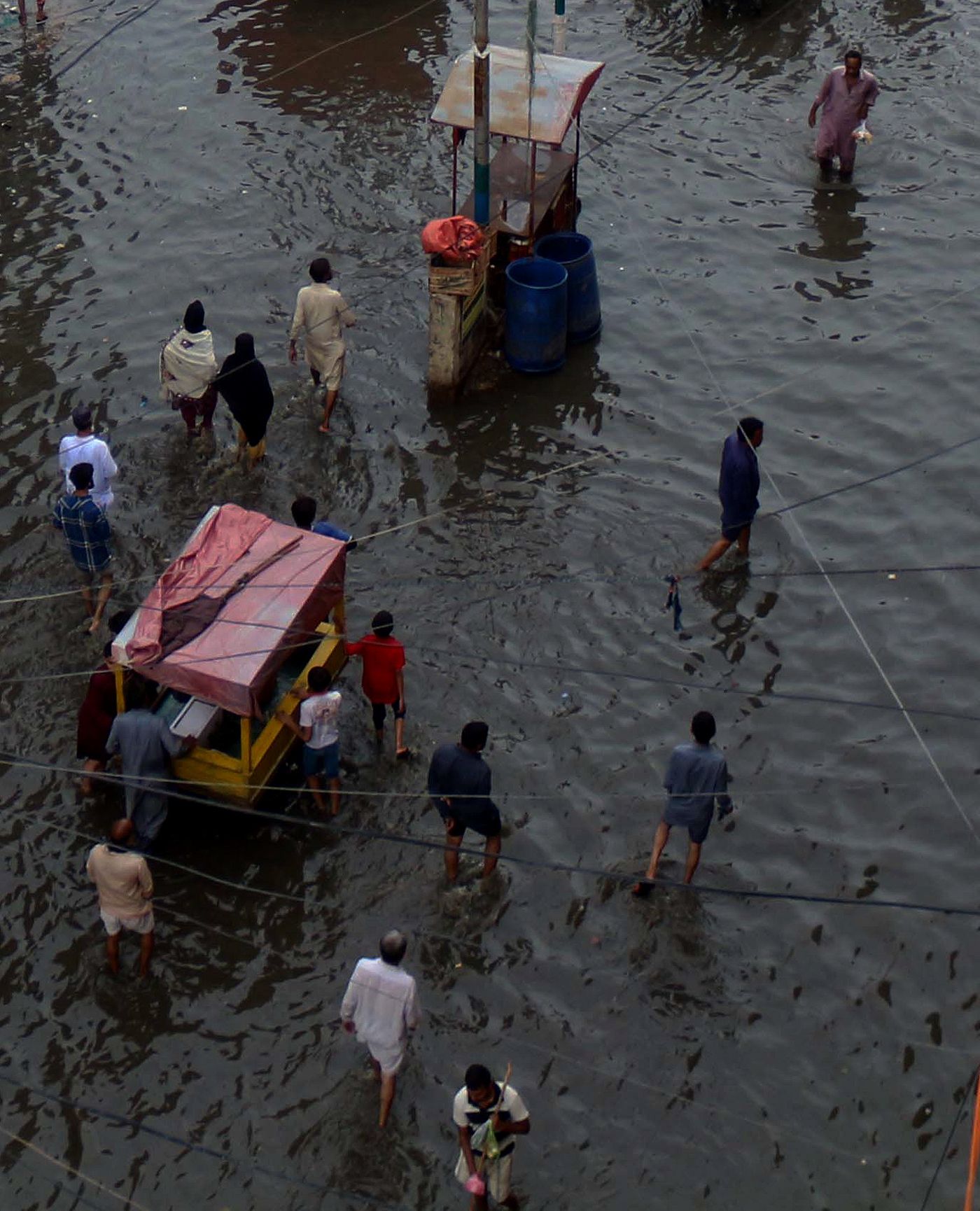 Nadeem Khavar / EPA / Scanpix / LETA Жители Хайдарабада идут через затопленный участок Asif Hassan / AFP / Scanpix / LETA Житель города Джейкобабад плывет по нему в пластиковой бочке