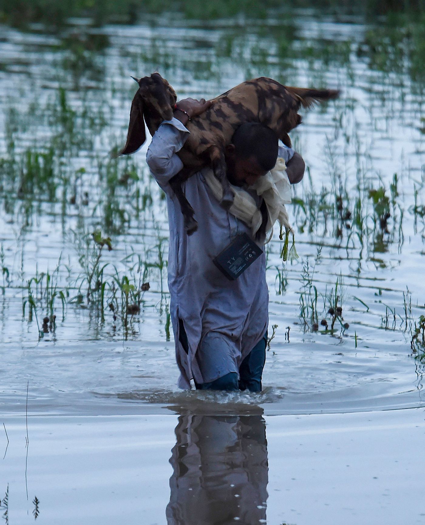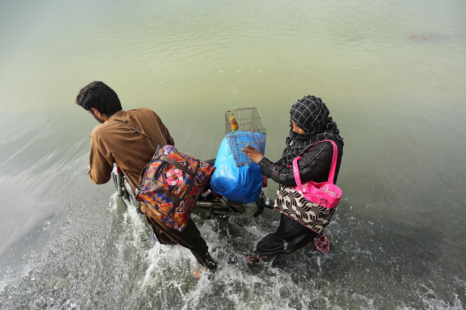 Shahid Saeed Mirza / AFP / Scanpix / LETA Жители деревни в округе Раджанпур (провинция Пенджаб) используют плот для перемещения по затопленной местности. Спасатели до сих пор не могут добраться до многих районов, где люди ждут эвакуации Shahid Saeed Mirza / AFP / Scanpix / LETA Люди выносят свои вещи (в том числе мопед и клетку с попугаем) из района бедствияAbdul Majeed / AFP / Scanpix / LETA Пострадавшая от наводнения деревня в округе Чарсадда (провинция Хайбер-Пахтунхва). Вдали видна незатопленная дорога — именно лежащие на возвышении шоссе стали спасением для многих жителей страныArshad Arbab / EPA / Scanpix / LETA Мальчик держится за веревку, пересекая поток. Фотография сделана в округе Чарсадда (провинция Хайбер-Пахтунхва)Fayaz Aziz / Reuters / Scanpix / LETA Мужчина пытается преодолеть поток в округе ЧарсаддаAkram Shahid / AFP / Scanpix / LETA Жители миллионного Хайдарабада перемещаются на плотах по каналам, в которые превратились улицы города. С июня жертвами наводнений по всей стране стали по меньшей мере 937 человек. Более трети из них — детиAsif Hassan / AFP / Scanpix / LETA Мужчина несет через поле козу. Округ Наушахро-Ферозе, провинция Синд