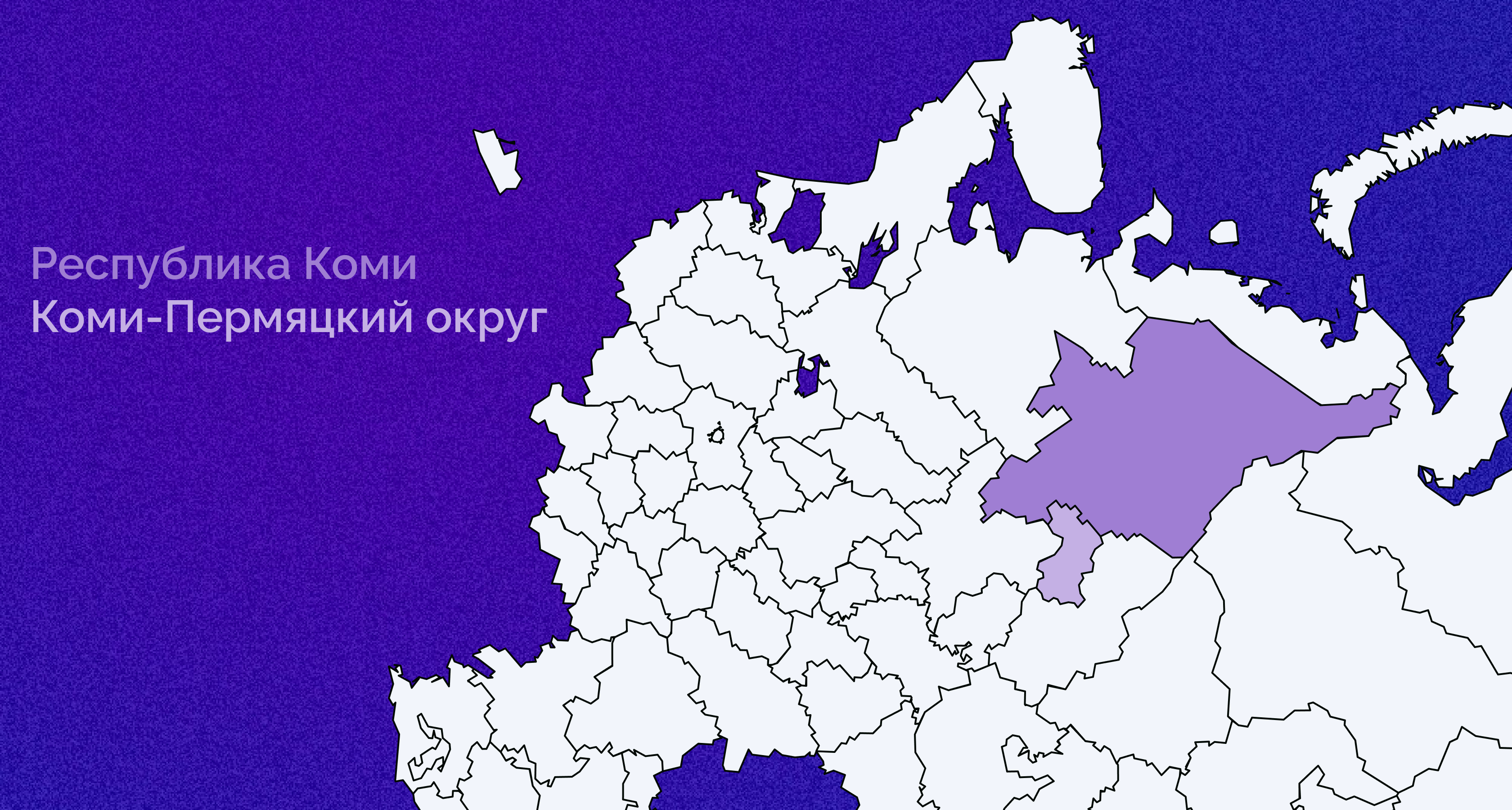 Республика Коми и Коми-Пермяцкий округ на карте РФ