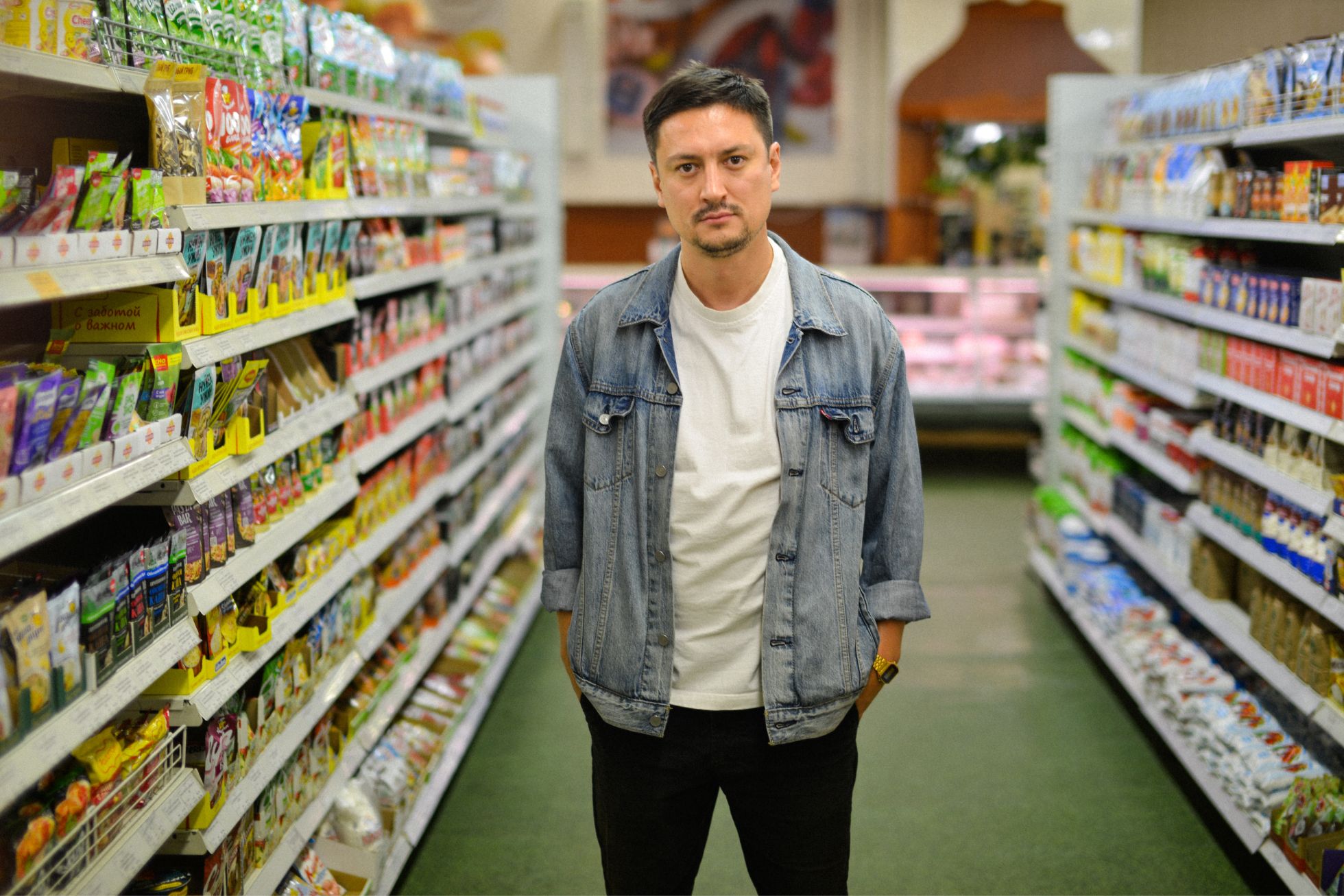 Во время подготовки к съемкам «Продуктов 24» мы с художником повторно ездили туда, чтобы проникнуться атмосферой. Ничего интересного там не происходило. Это довольно грязное замкнутое пространство с неярким, глухим светом. Все время было ощущение, что тебя контролируют. Когда мы зашли в магазин, [из подсобного помещения] сразу же вышел человек и стал следить за продавщицей. Она не могла рассчитать покупателя: не знала, как работает терминал. Он подошел и объяснил, был довольно агрессивен.