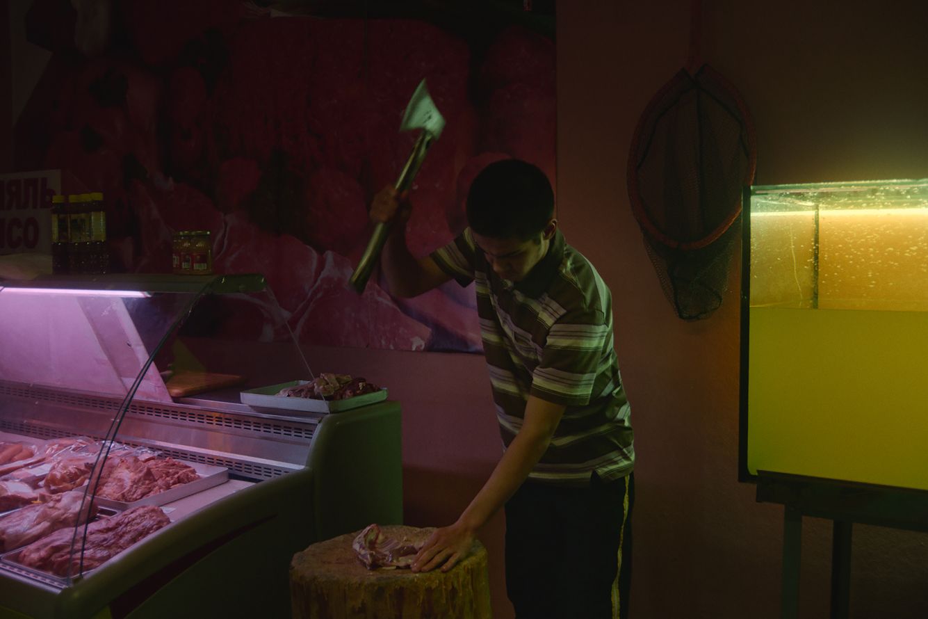 — Изначально в сценарии это было. Но в процессе обсуждения с продюсерами мы пришли к выводу, что это фильм о другом. Он о главной героине, Мухаббат, ее переживаниях и терзаниях. Зачем в конце говорить, что магазин работает? Это безэмоциональная фиксация факта, и это мощнее, чем изображение. Этот текст может поменять все восприятие фильма, который мы сделали. Мы этого не хотели. Сообщение о том, что магазин работает, — это шок-контент, в этом проявляется журналистская или документальная логика. Мы же стараемся высказаться с помощью визуальных образов.