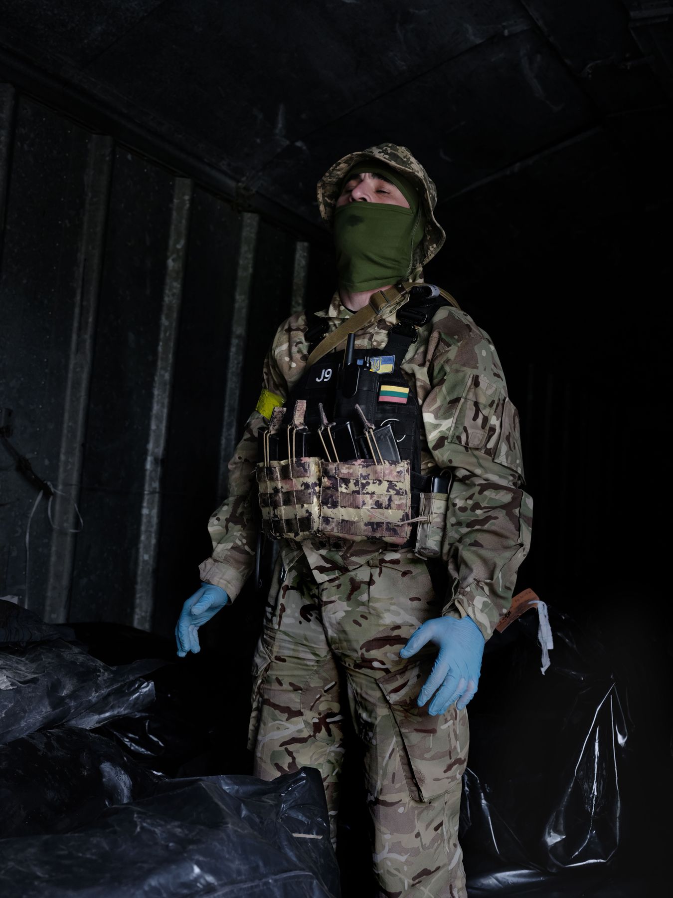 Antoine dʼAgata / Magnum Украинский солдат в вагоне-рефрижераторе с трупами российских солдат. Харьков, май 2022 года